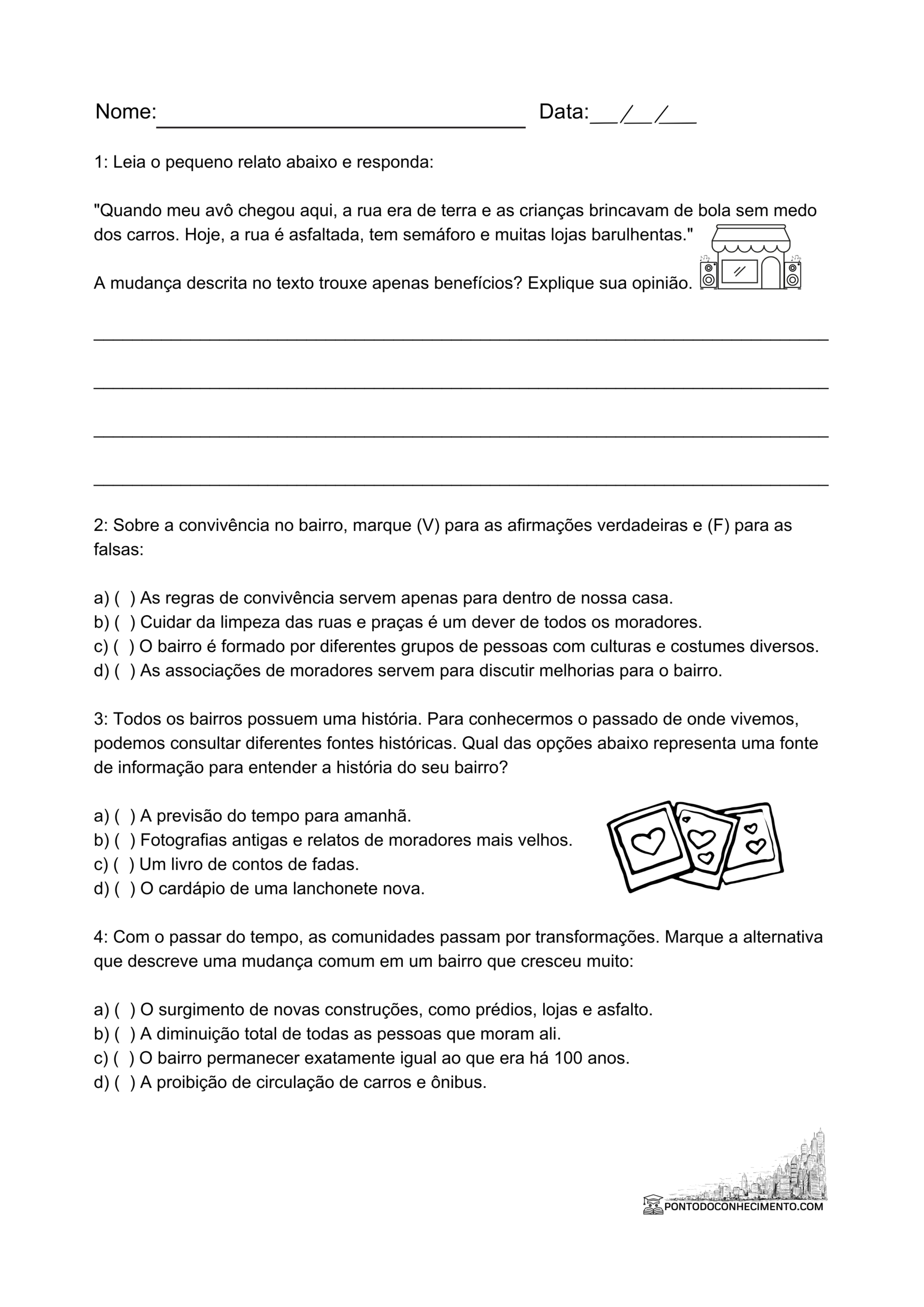 Atividade de História 3º Ano sobre História da Comunidade e do Bairro