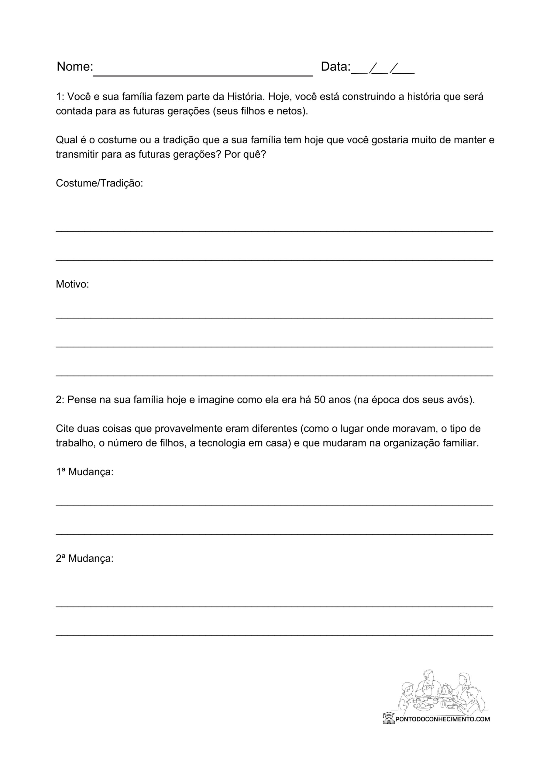 Ao comparar a vida dos pais e avós com a realidade atual, o aluno é incentivado a observar as mudanças e permanências no tempo. Por exemplo, as diferenças nas profissões exercidas pelos antepassados e as mudanças tecnológicas nos lares são facilmente identificadas. Todavia, certas tradições, como festas típicas, receitas culinárias ou valores morais, permanecem sendo transmitidos através das décadas.