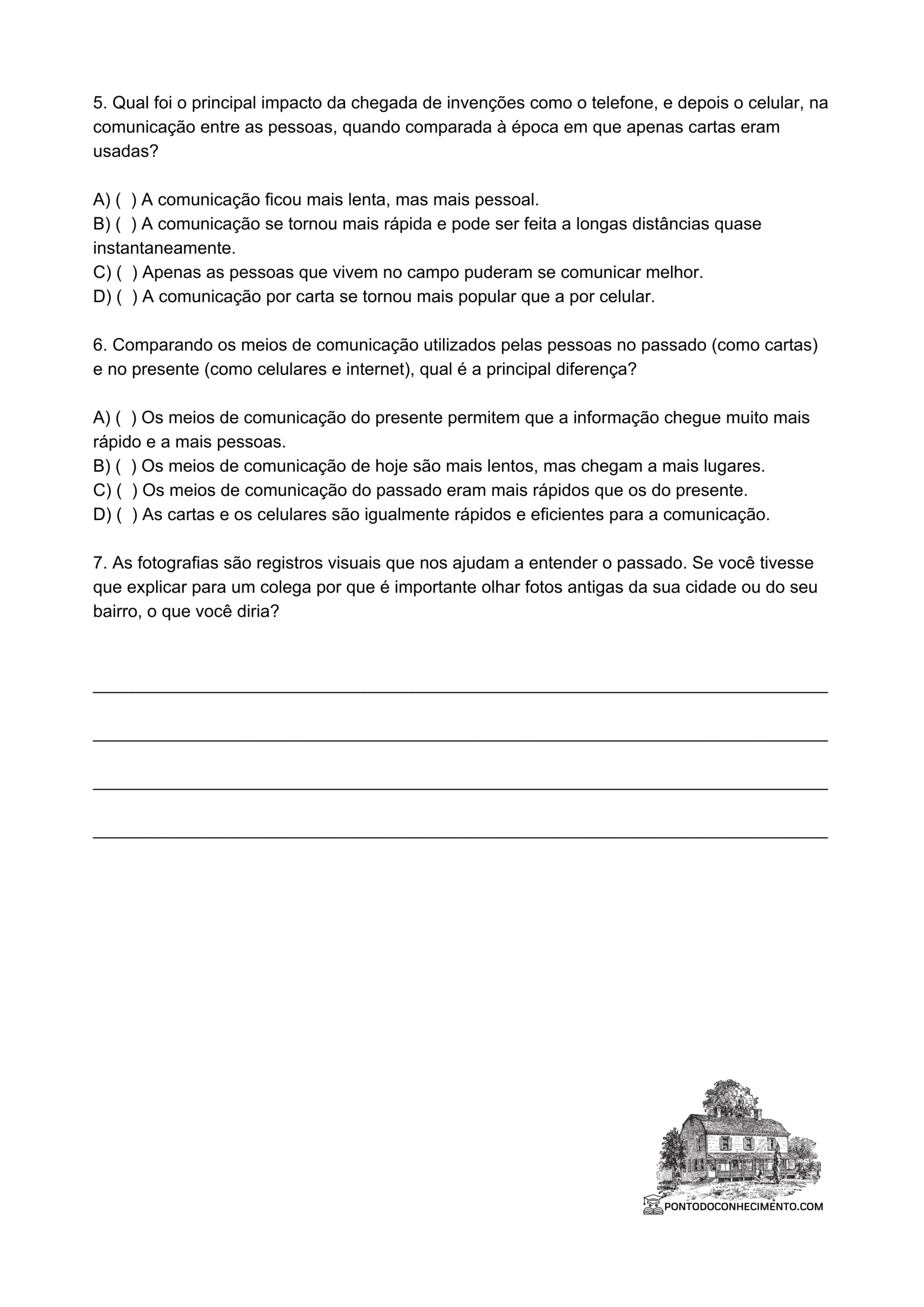 Atividade de História 3º Ano sobre Modos de Vida no Passado e no Presente