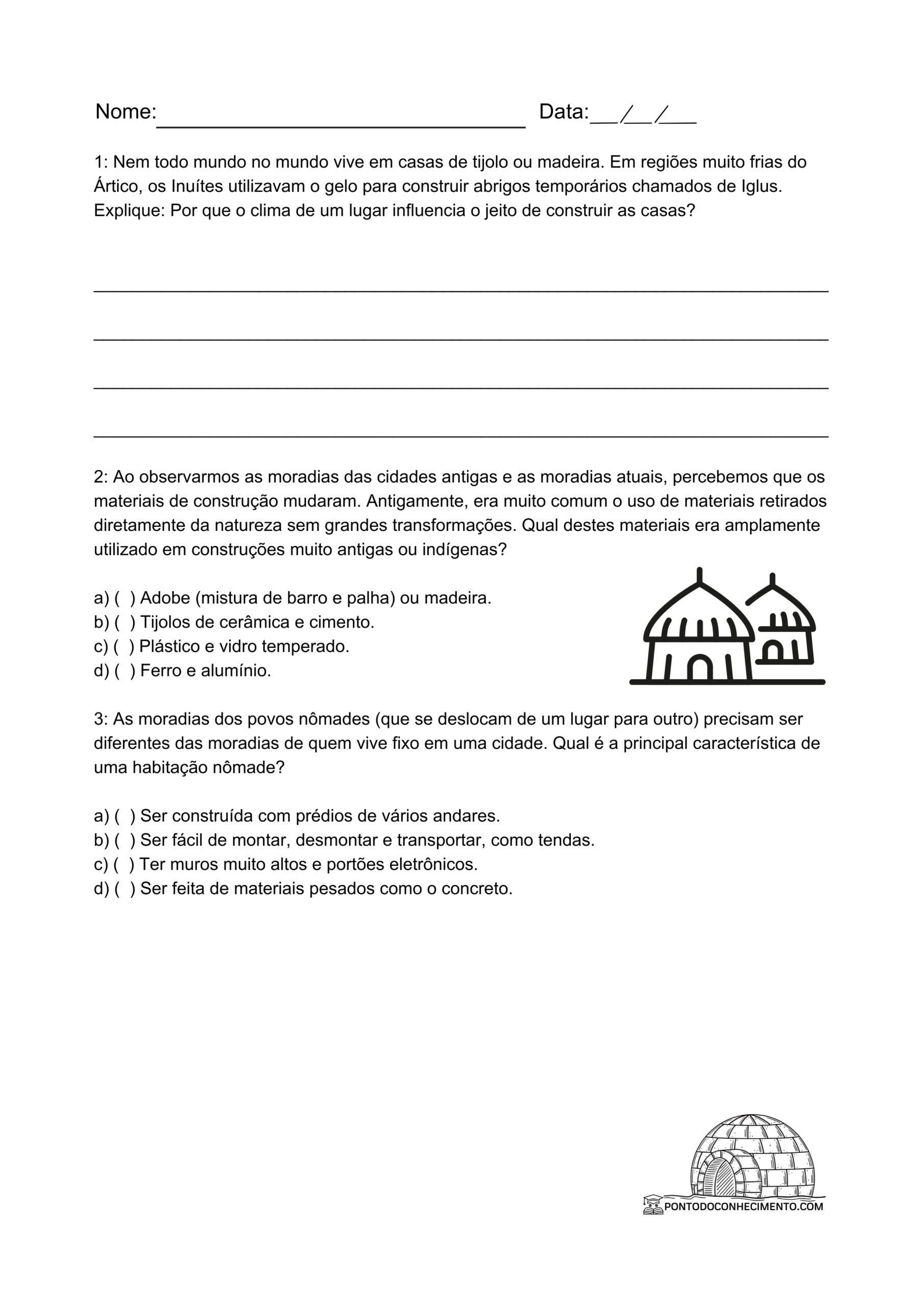 CLIQUE AQUI: Atividade de história 3º ano do ensino fundamental sobre moradias e formas de habitar em diferentes tempos e lugares em PDF