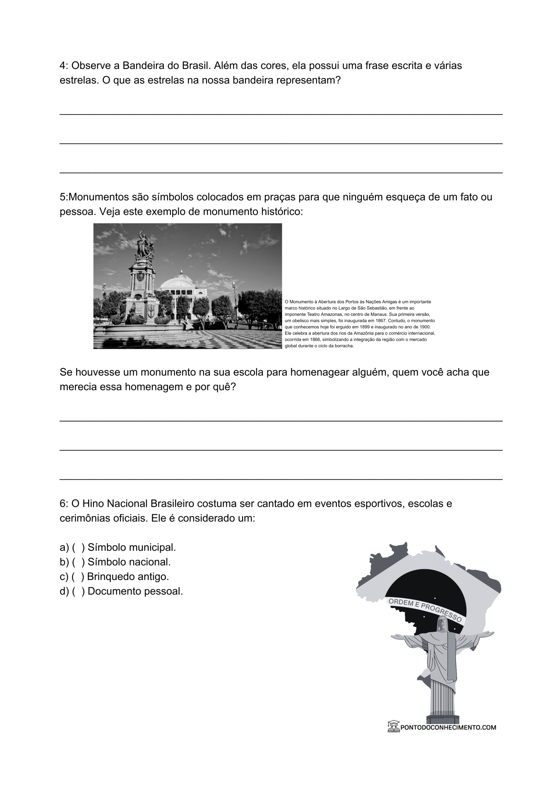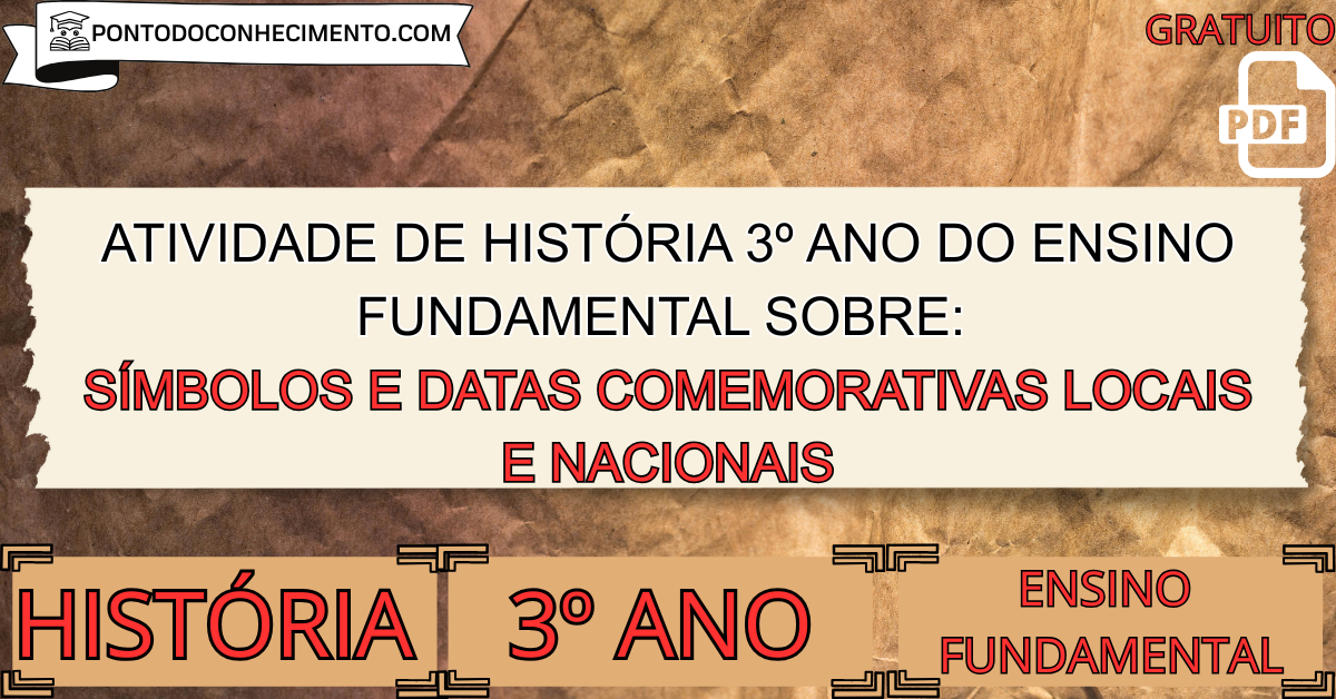 CLIQUE AQUI: Atividade de história 3º ano do ensino fundamental sobre símbolos e datas comemorativas locais e nacionais em PDF