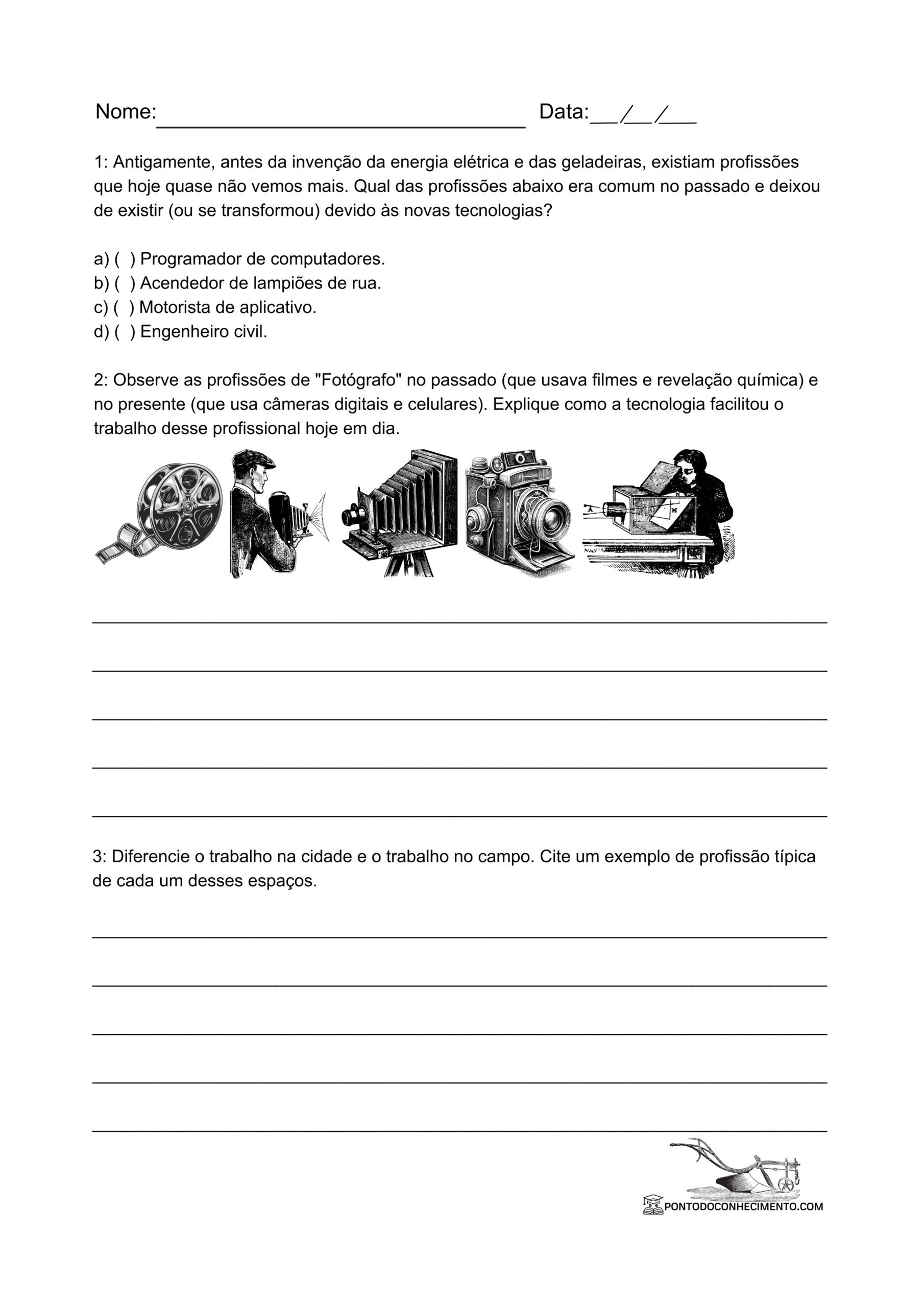 Atividade de História 3º Ano sobre Trabalho e Profissões no Passado e no Presente