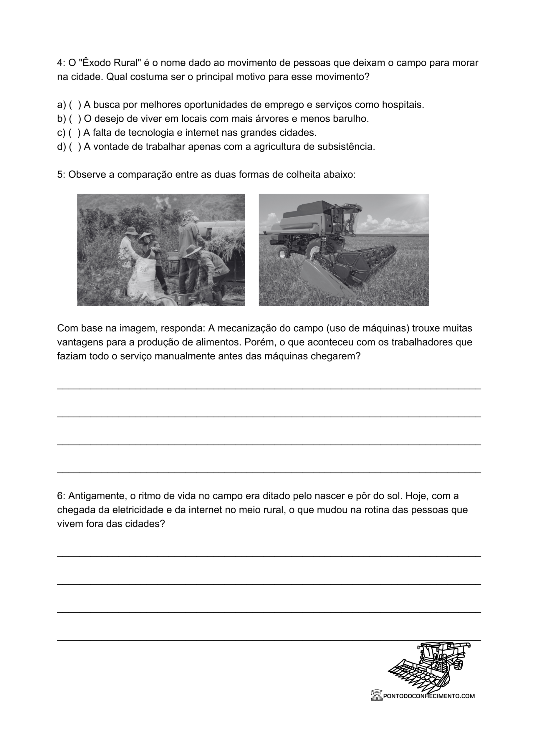Atividade de História 3º Ano sobre Transformações na Cidade e no Campo