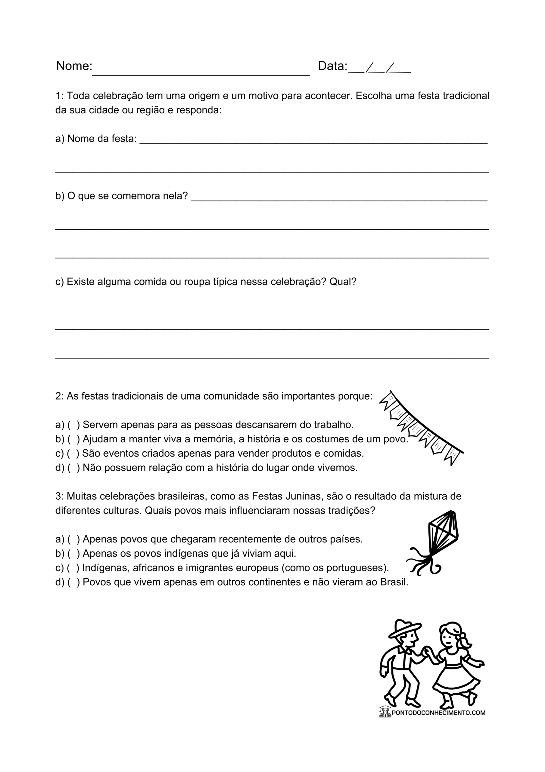 CLIQUE AQUI: Atividade de história 3º ano sobre festas populares e tradições da nossa região em PDF