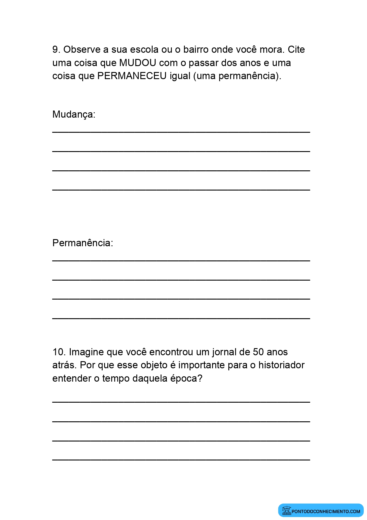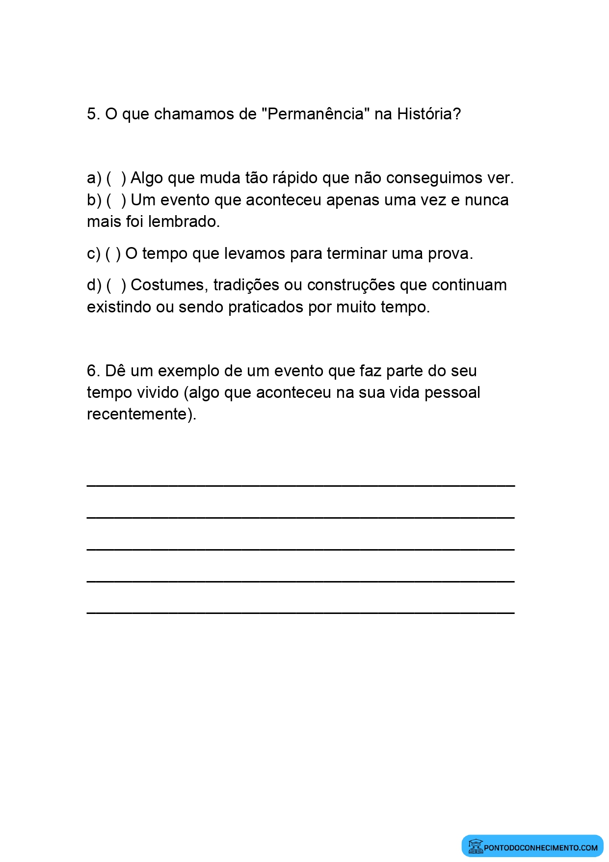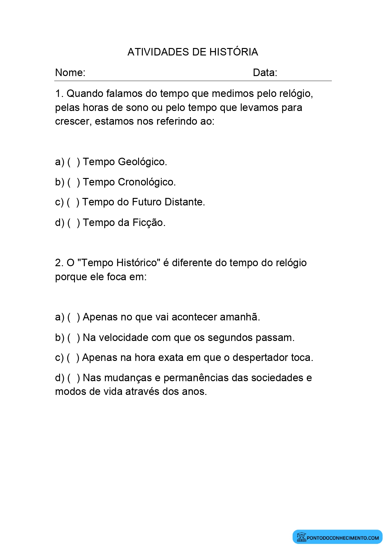 CLIQUE AQUI: Atividade de História 4º ano sobre noções de tempo histórico em PDF