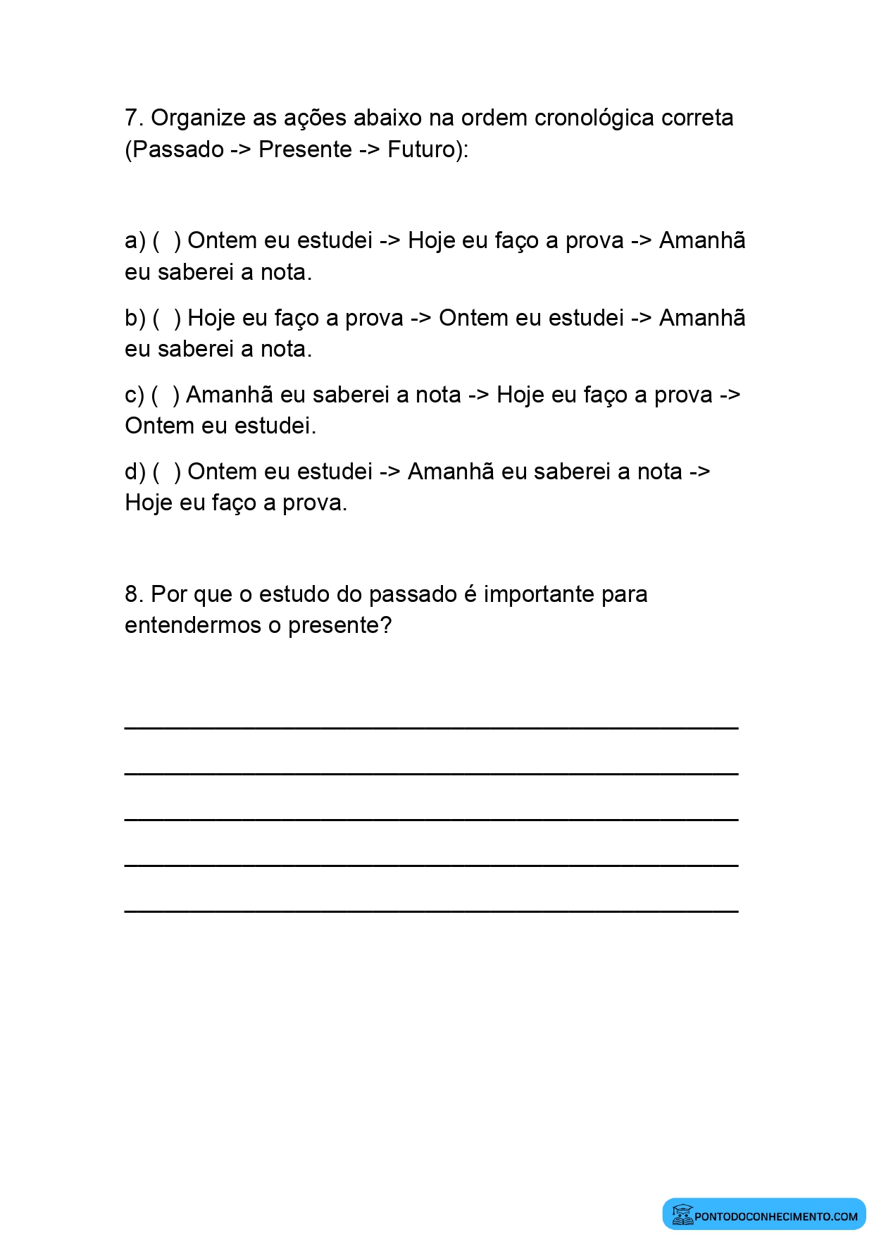 - Organize as ações abaixo na ordem cronológica correta (Passado -> Presente -> Futuro):