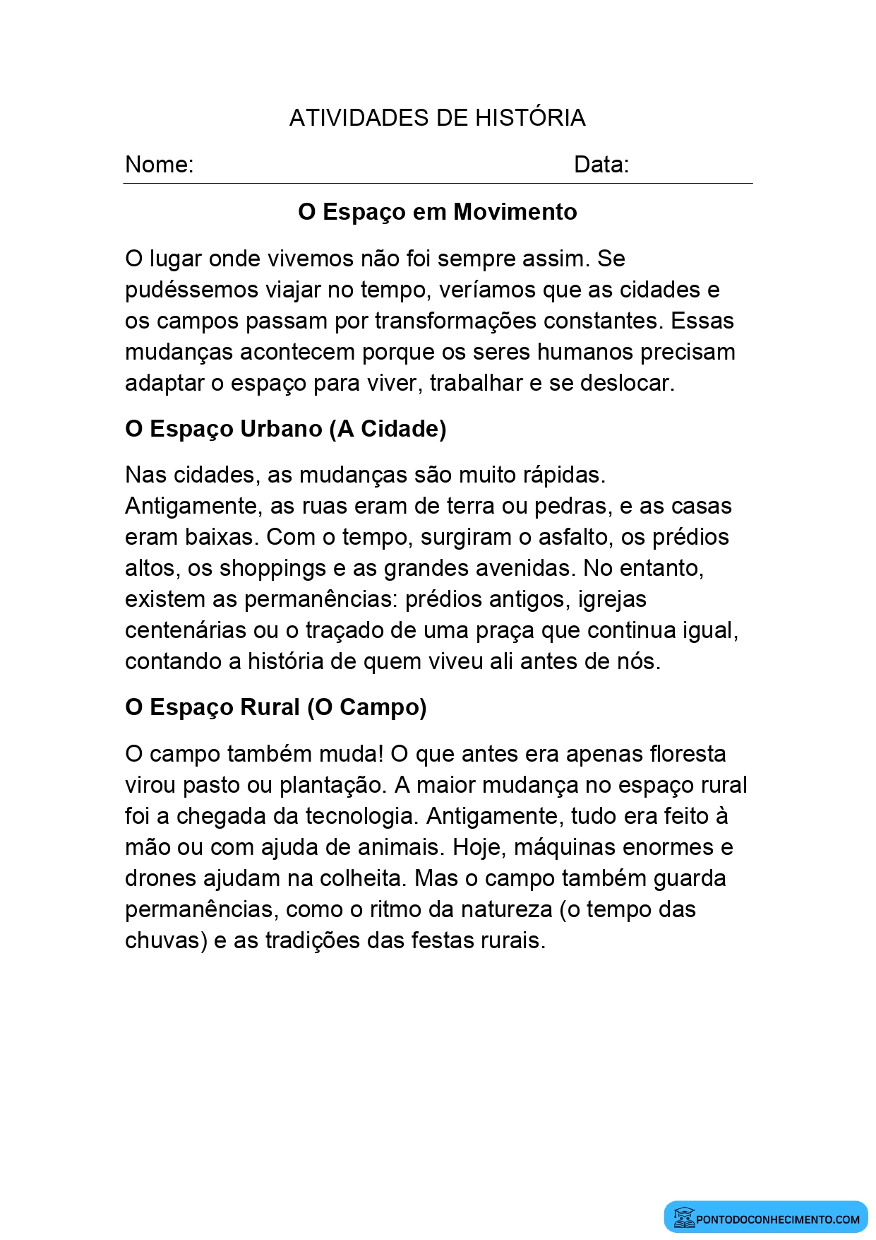 Atividade de História quarto ano Espaço Urbano e Espaço Rural Transformações Históricas Atividade de História quarto ano Modificações no Campo e na Cidade com o Passar do Tempo Atividade de História quarto ano A Evolução dos Espaços Urbanos e Rurais Atividade de História quarto ano Sociedade e Transformações no Espaço Geográfico