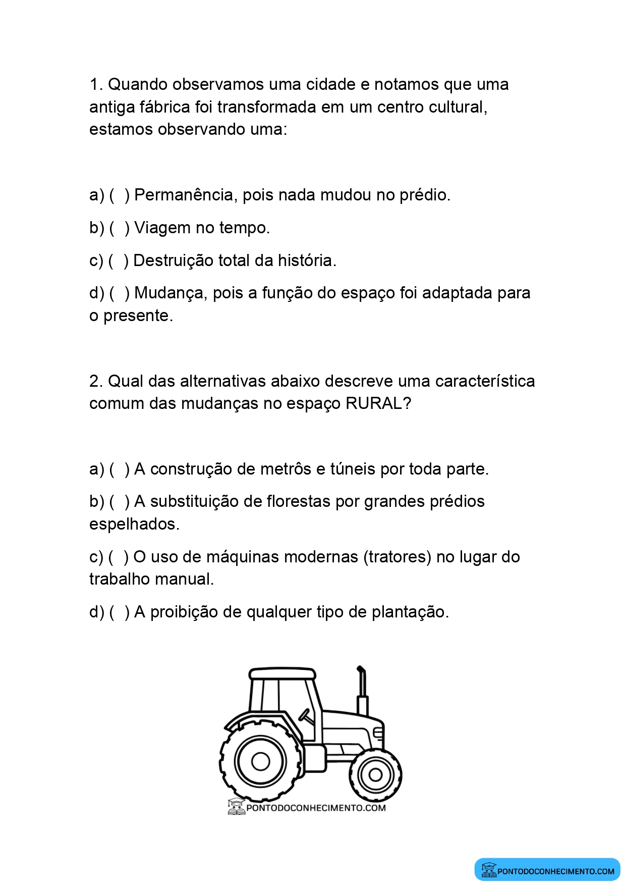 3. c) ( ) O uso de máquinas modernas (tratores) no lugar do trabalho manual.