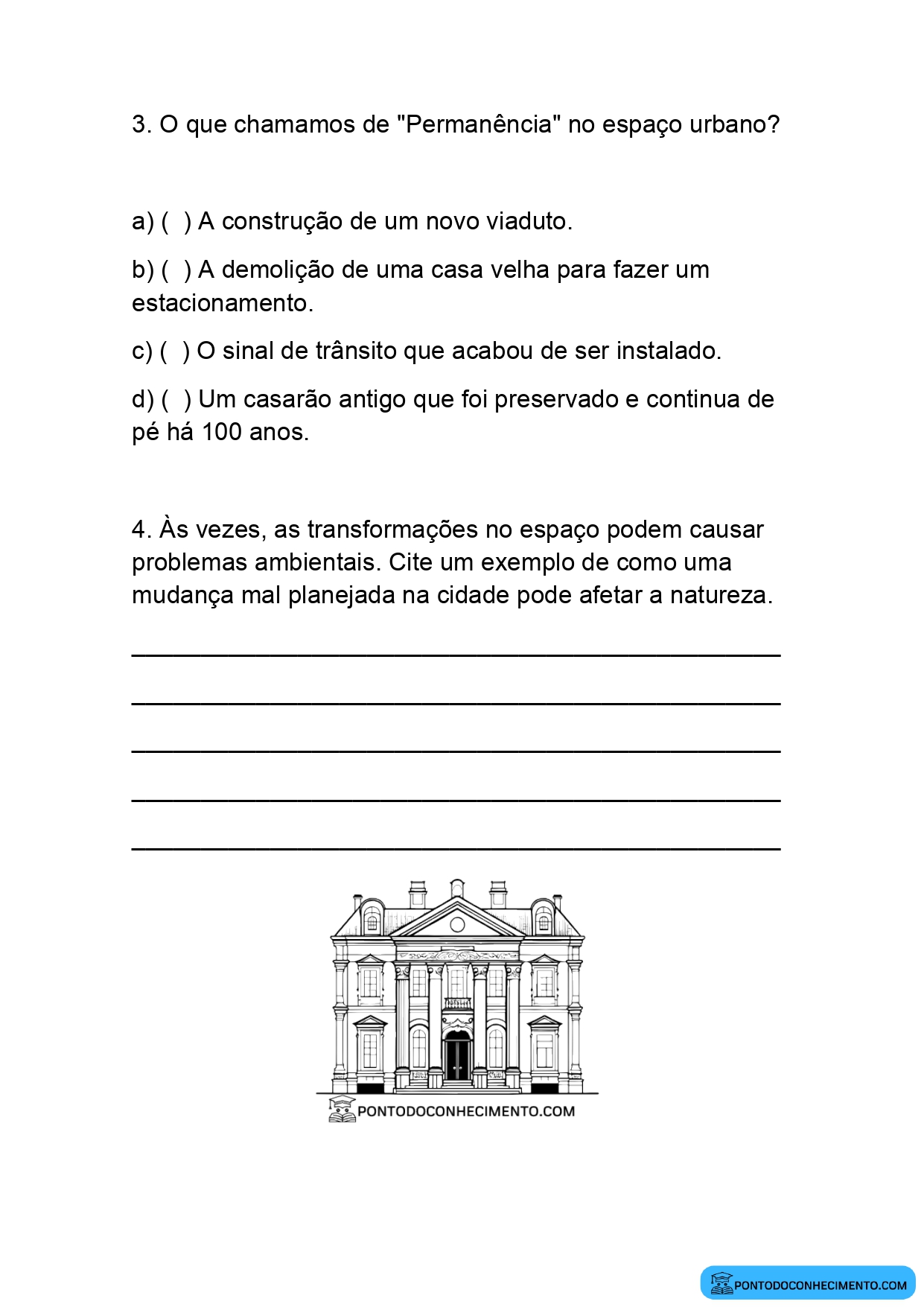 4. d) ( ) Um casarão antigo que foi preservado e continua de pé há 100 anos.