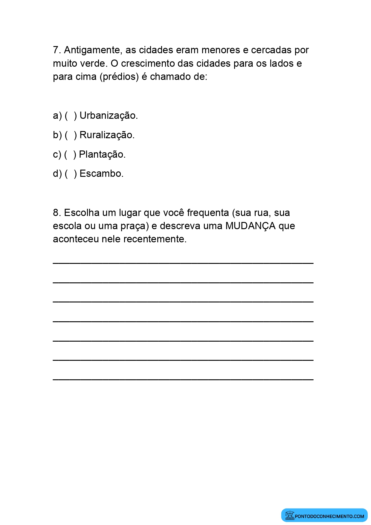 1. a) ( ) Urbanização.