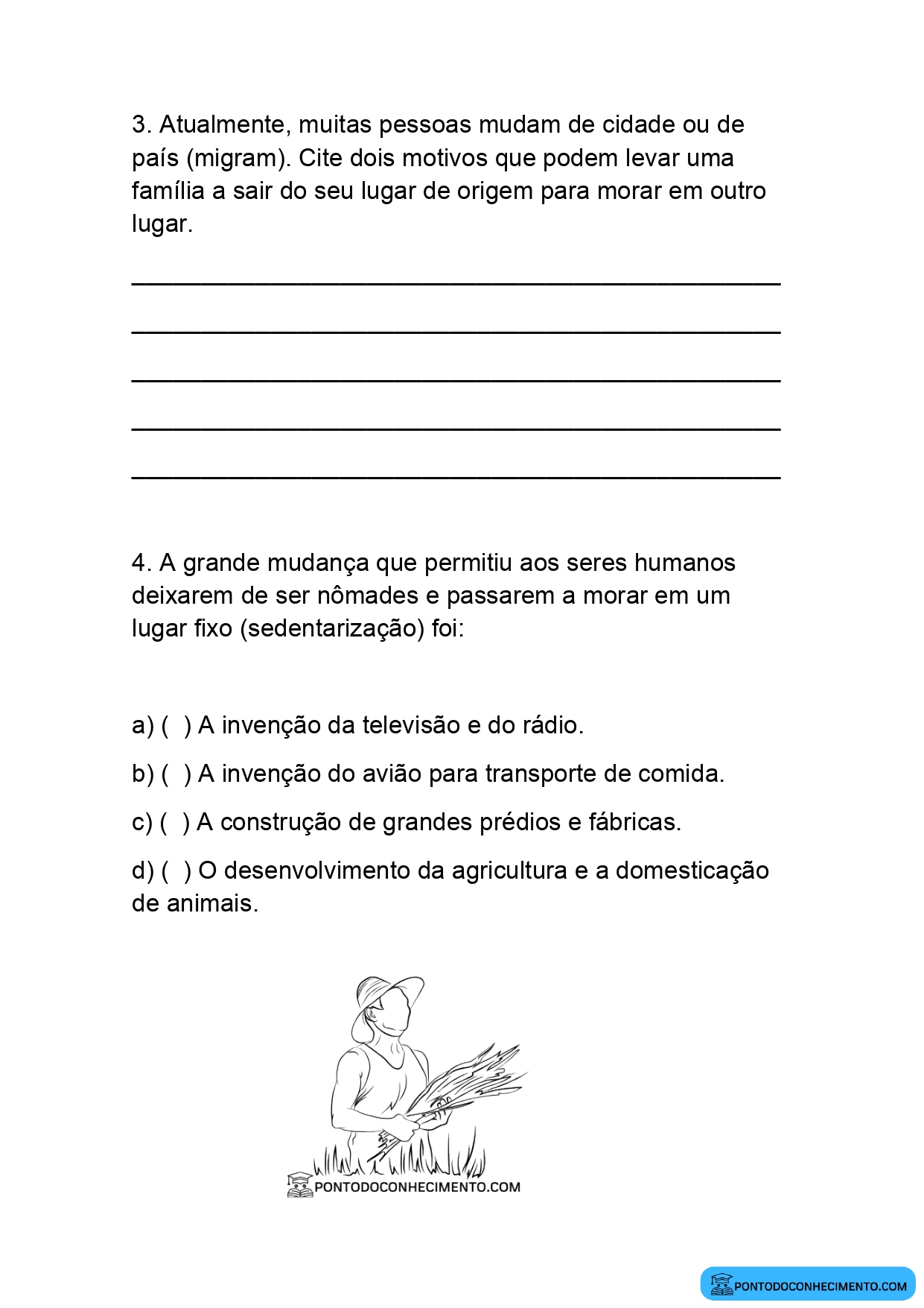 - Atualmente, muitas pessoas mudam de cidade ou de país (migram). Cite dois motivos que podem levar uma família a sair do seu lugar de origem para morar em outro lugar.