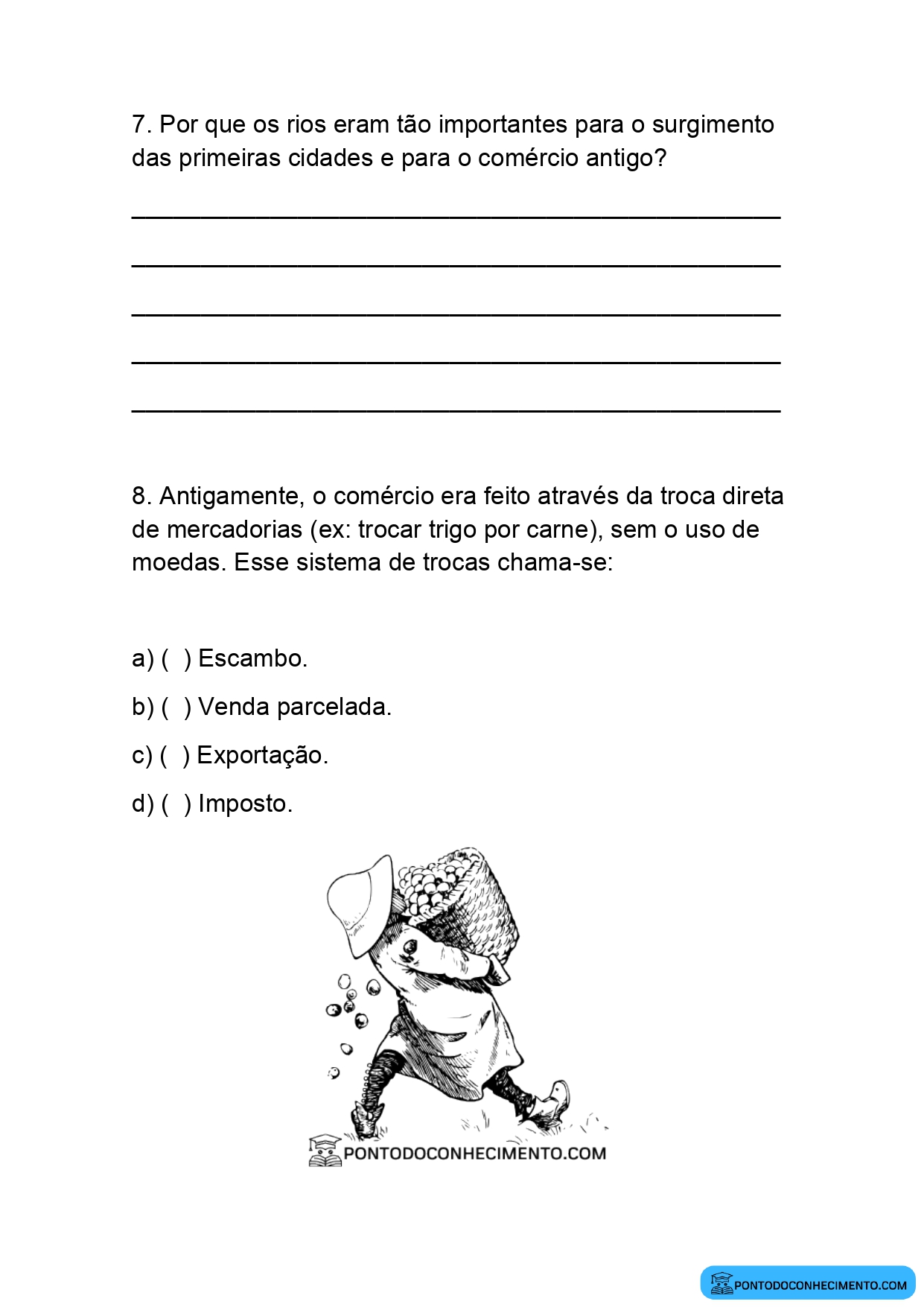 - Antigamente, o comércio era feito através da troca direta de mercadorias (ex: trocar trigo por carne), sem o uso de moedas. Esse sistema de trocas chama-se: