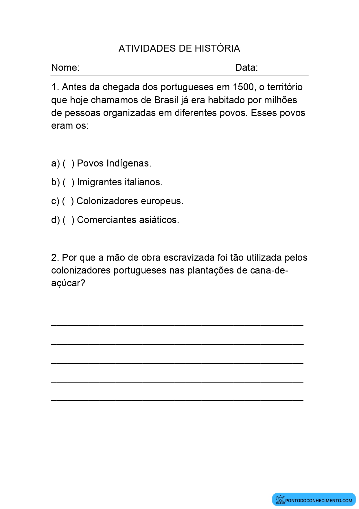 CLIQUE AQUI: Avaliação de história quarto ano terceiro bimestre em PDF