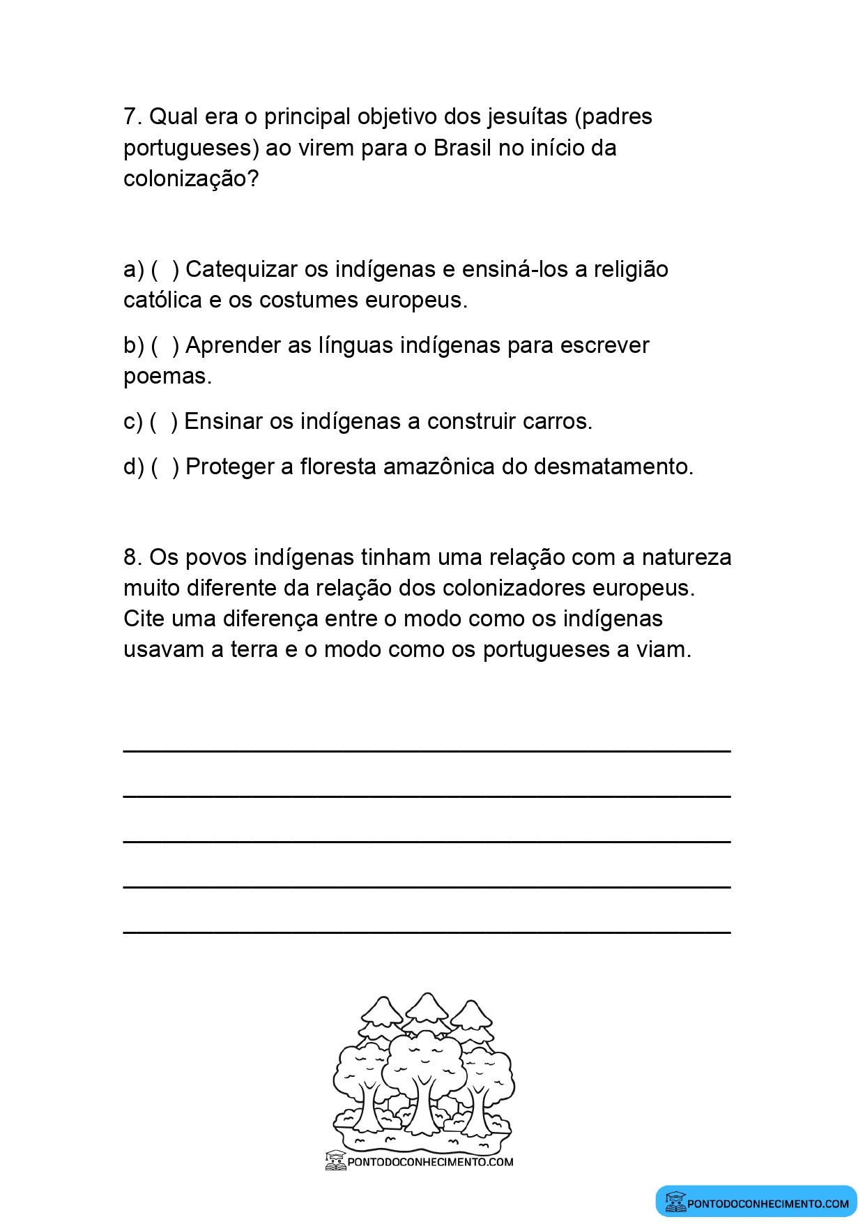 - a) ( ) Catequizar os indígenas e ensiná-los a religião católica e os costumes europeus.