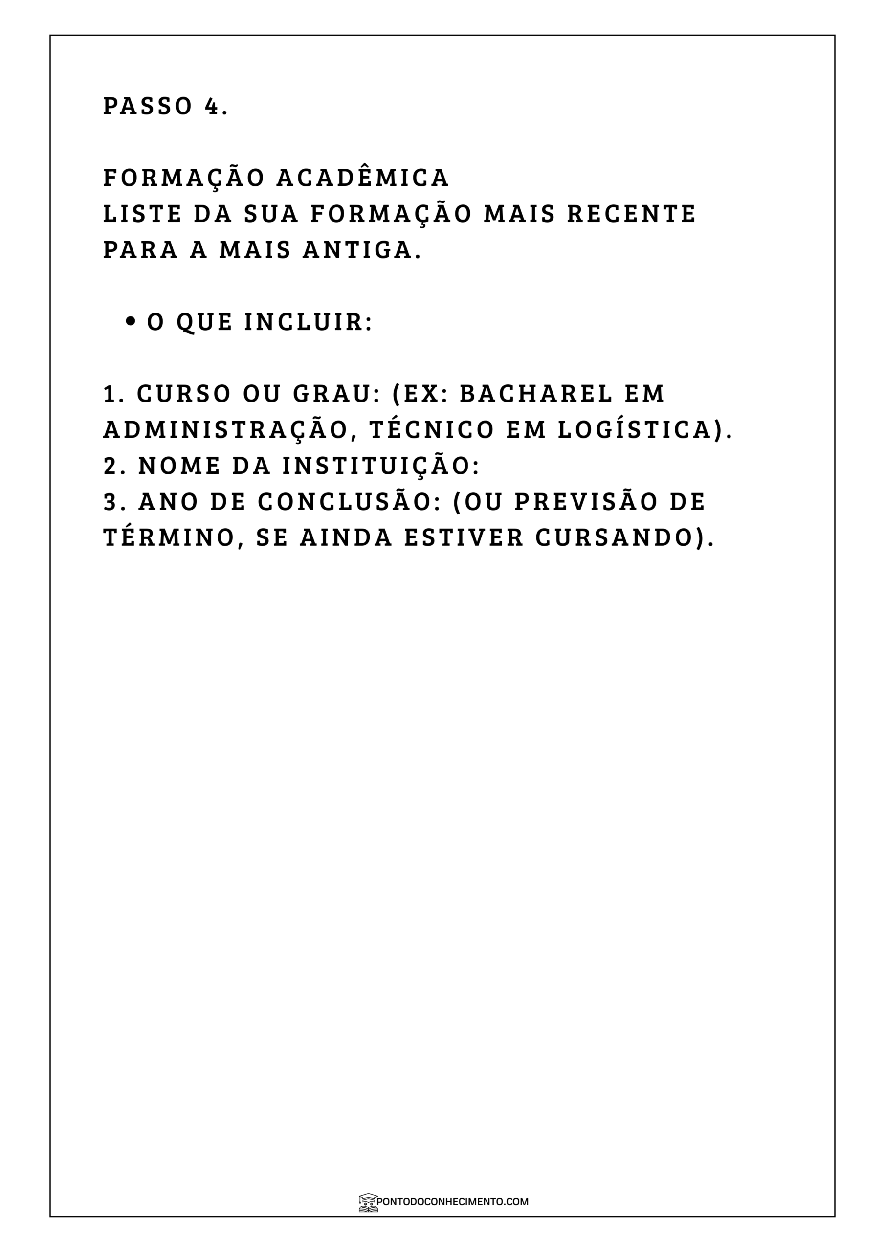 - Curso ou Grau: (Ex: Bacharel em Administração, Técnico em Logística).