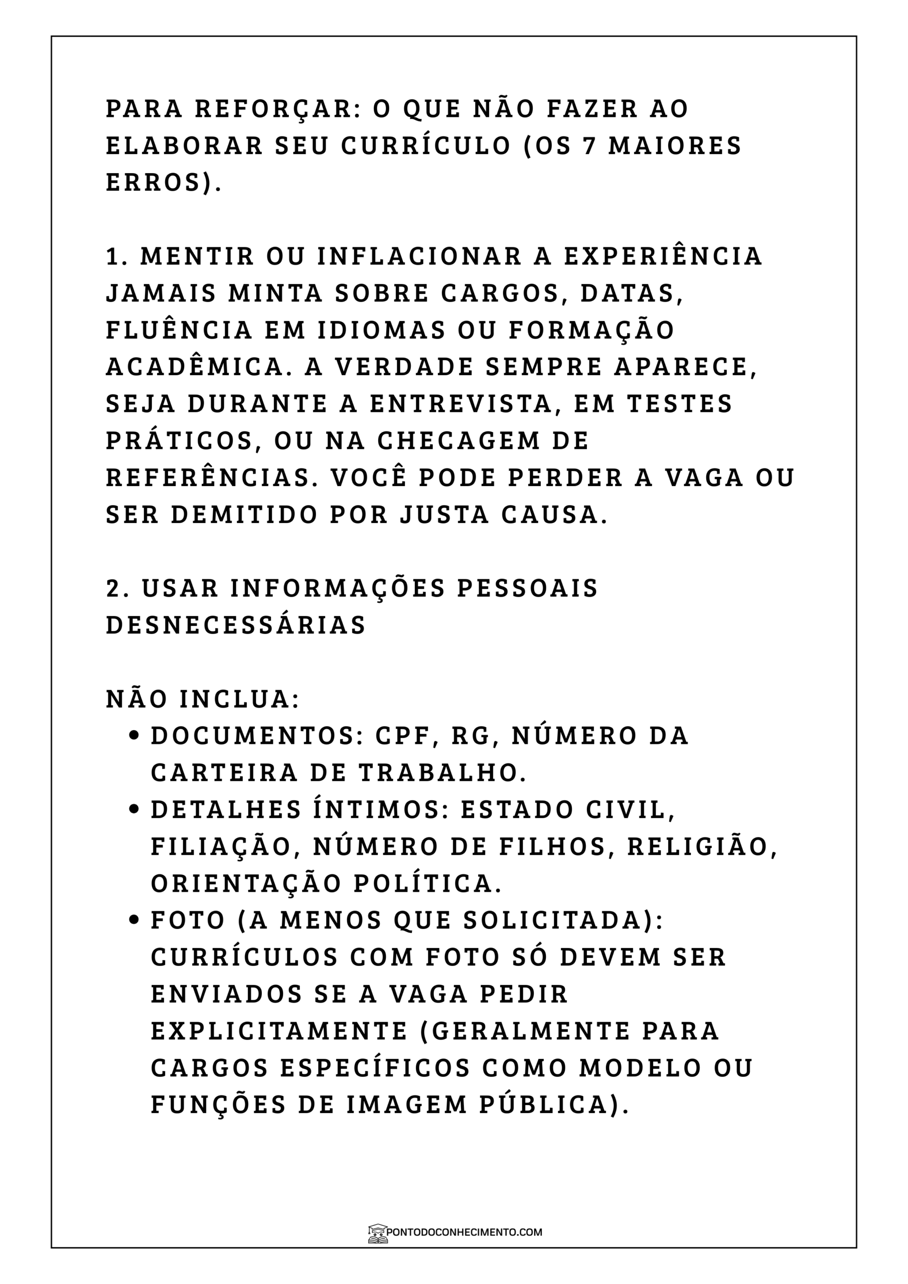 Para reforçar: O Que NÃO Fazer ao Elaborar Seu Currículo (Os 7 Maiores Erros)