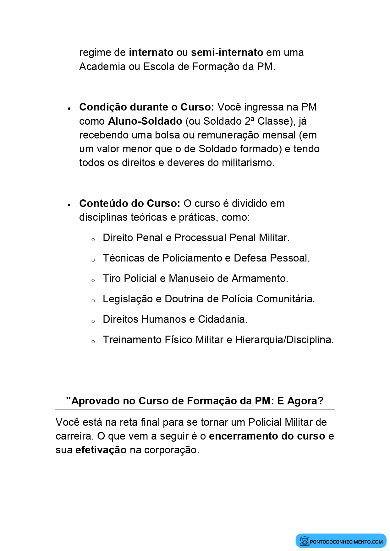 • Declaração de Aspirante (em alguns estados): Em alguns sistemas (embora menos comum para Soldados e mais para Oficiais), o período final pode ser um estágio probatório como Aspirante. Para Soldados, o mais comum é a promoção direta.