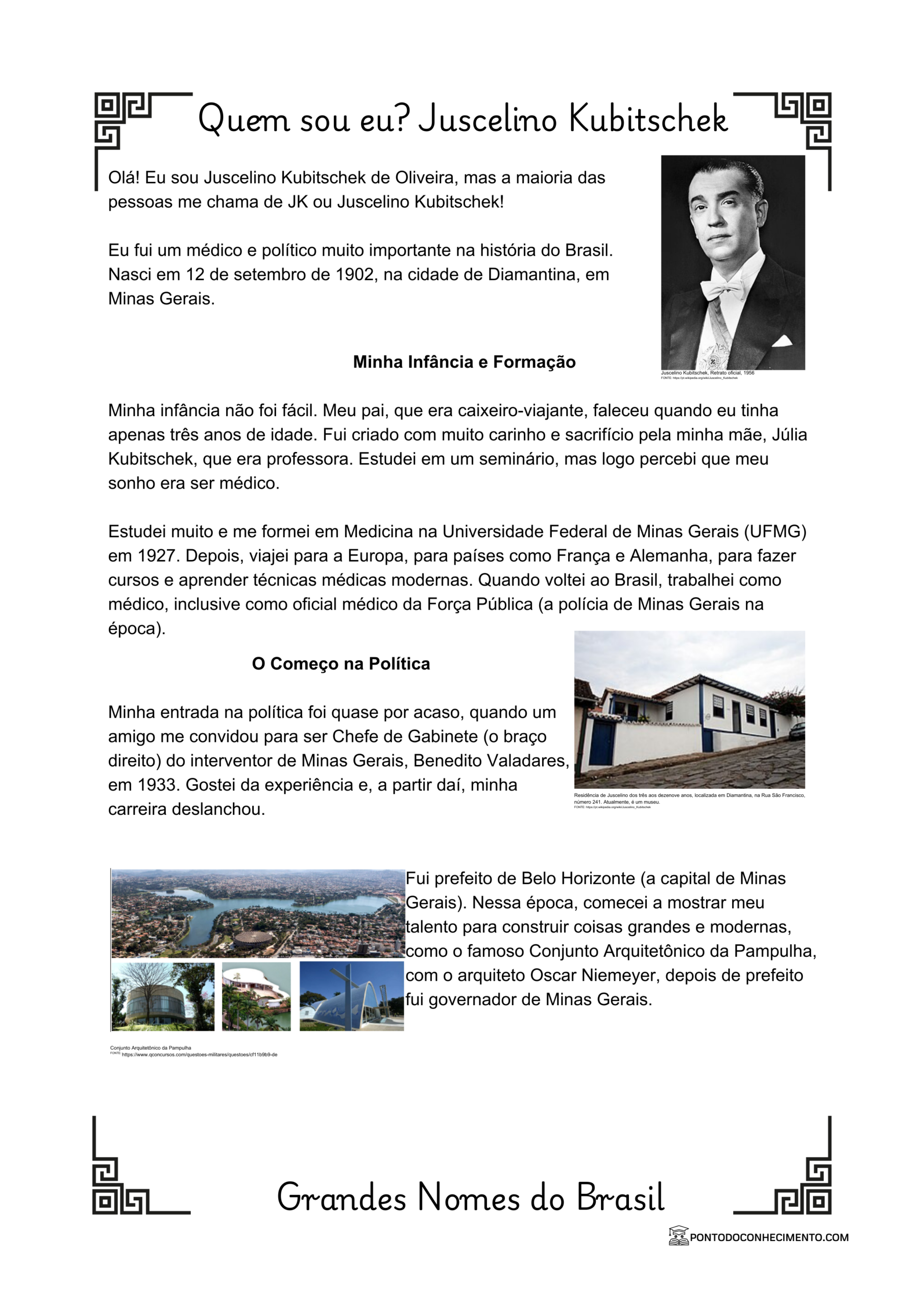 Olá! Eu sou Juscelino Kubitschek de Oliveira, mas a maioria das pessoas me chama de JK ou Juscelino Kubitschek!