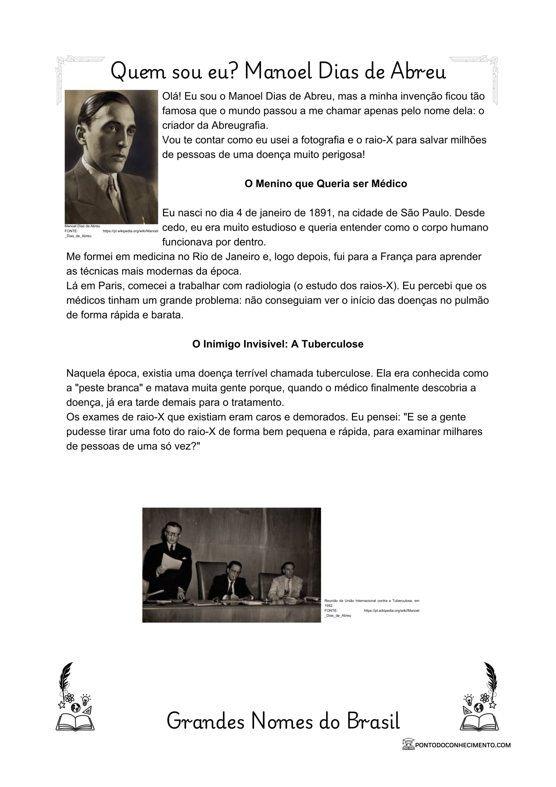 Olá! Eu sou o Manoel Dias de Abreu, mas a minha invenção ficou tão famosa que o mundo passou a me chamar apenas pelo nome dela: o criador da Abreugrafia.