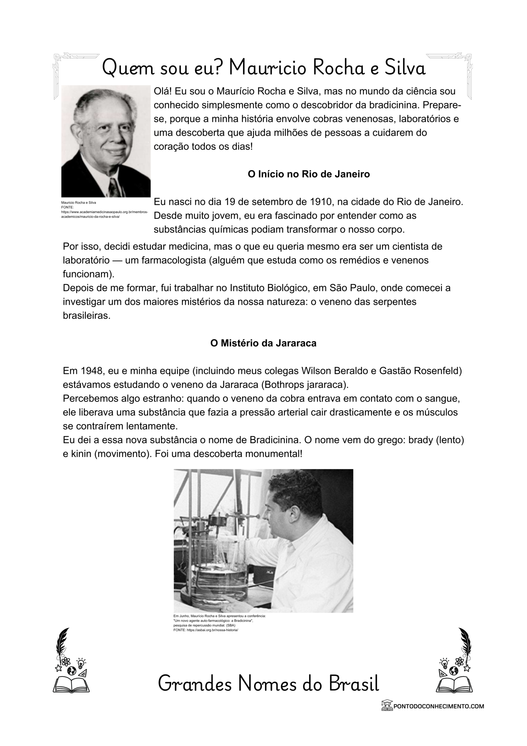 Olá! Eu sou o Maurício Rocha e Silva, mas no mundo da ciência sou conhecido simplesmente como o descobridor da bradicinina. Prepare-se, porque a minha história envolve cobras venenosas, laboratórios e uma descoberta que ajuda milhões de pessoas a cuidarem do coração todos os dias!