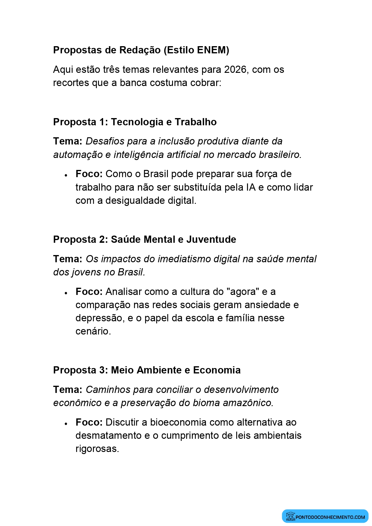 Aqui estão três temas relevantes para 2026, com os recortes que a banca costuma cobrar:
