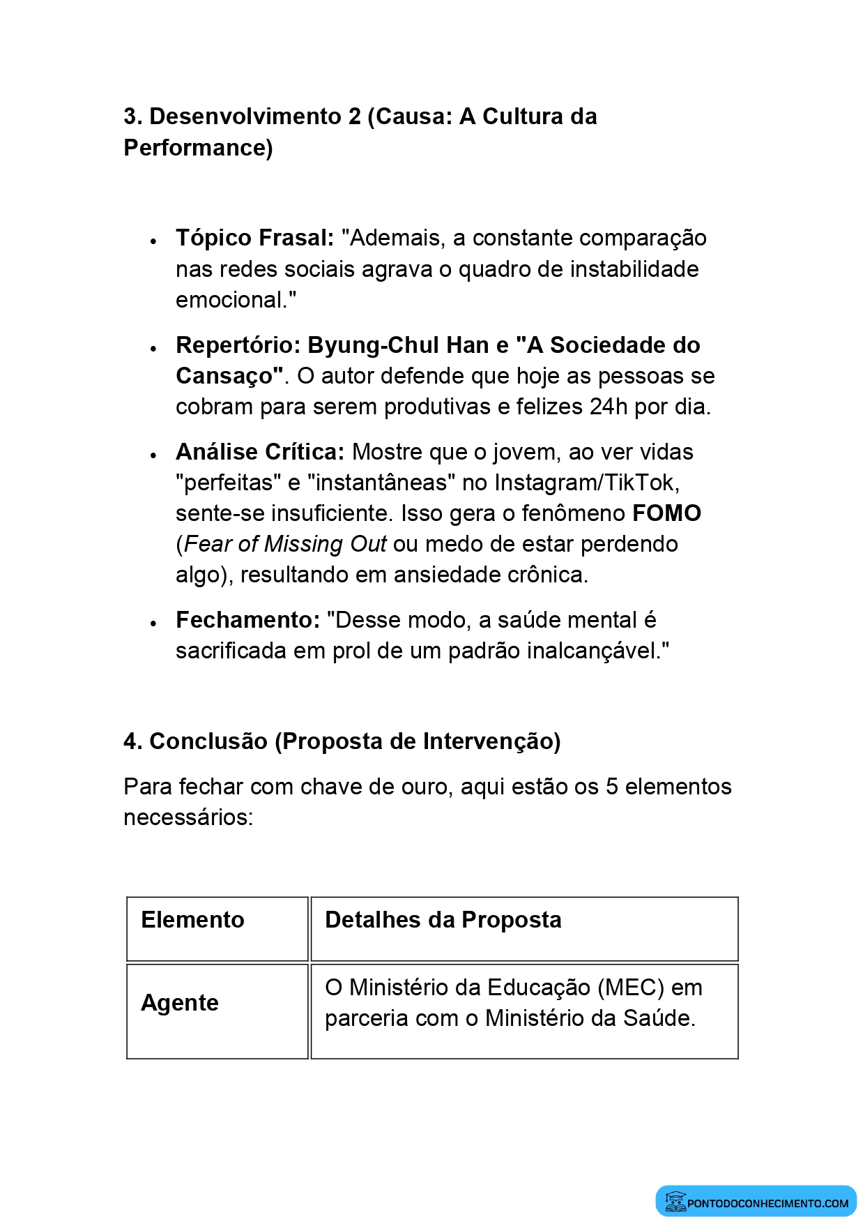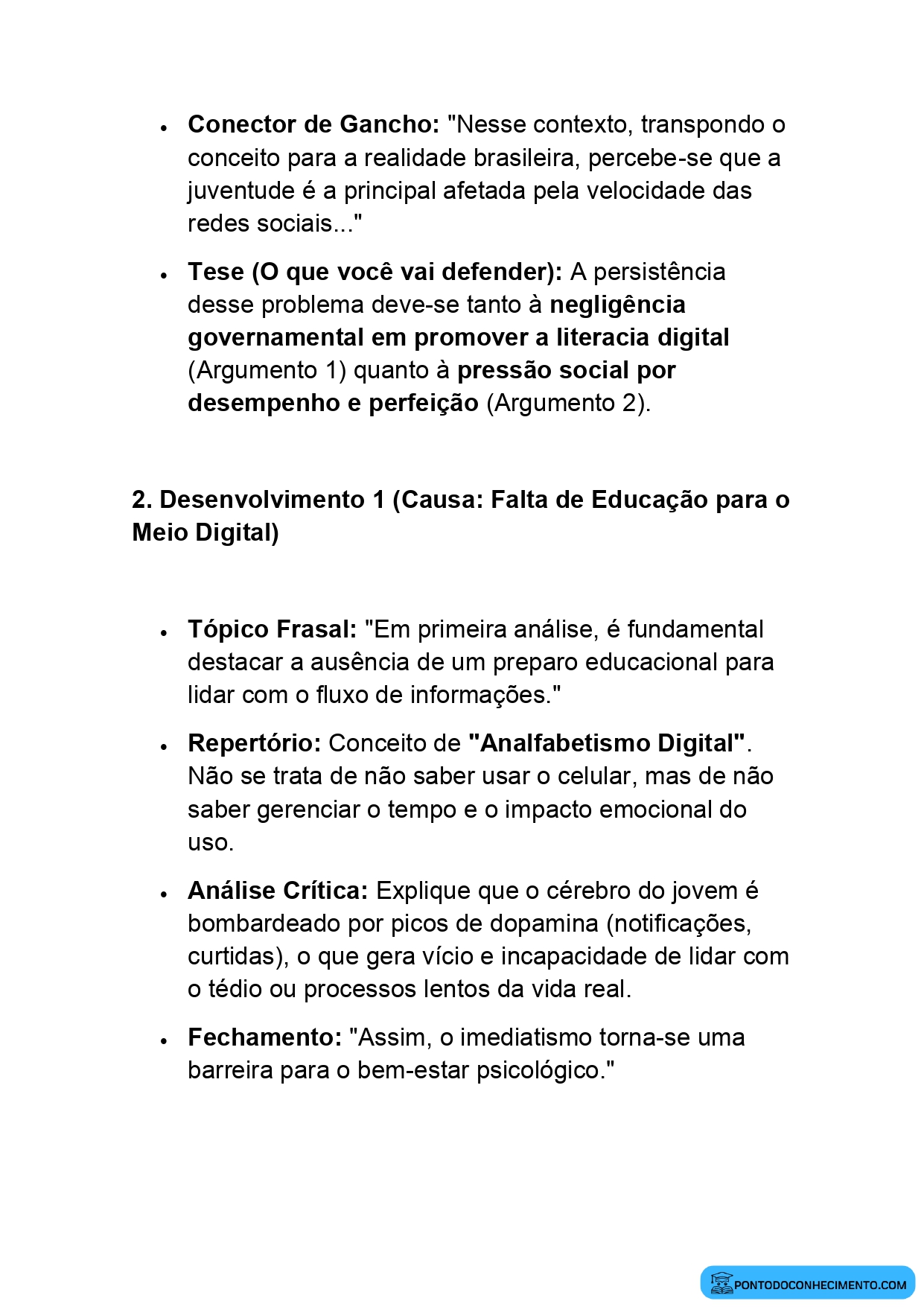 • Tese (O que você vai defender): A persistência desse problema deve-se tanto à negligência governamental em promover a literacia digital (Argumento 1) quanto à pressão social por desempenho e perfeição (Argumento 2).