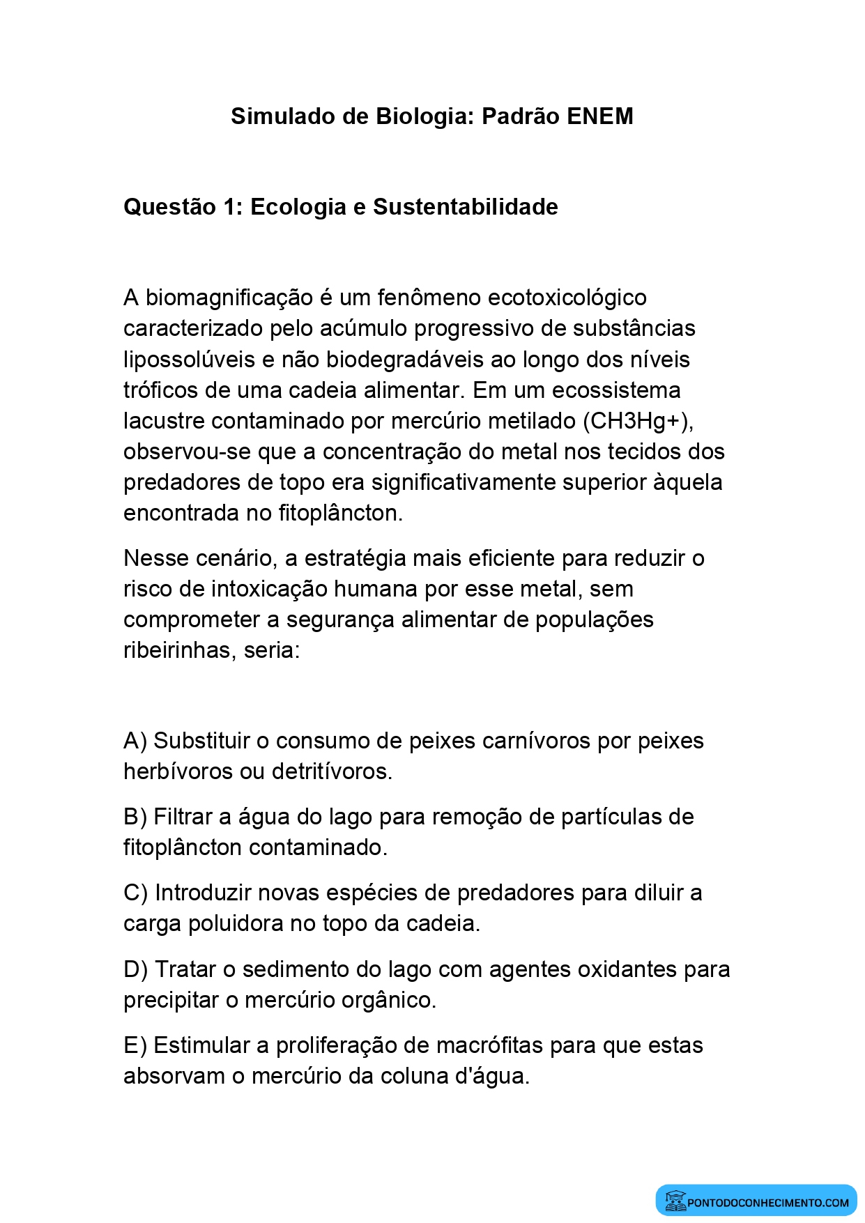 CLIQUE AQUI: Simulado Enem Biologia em PDF