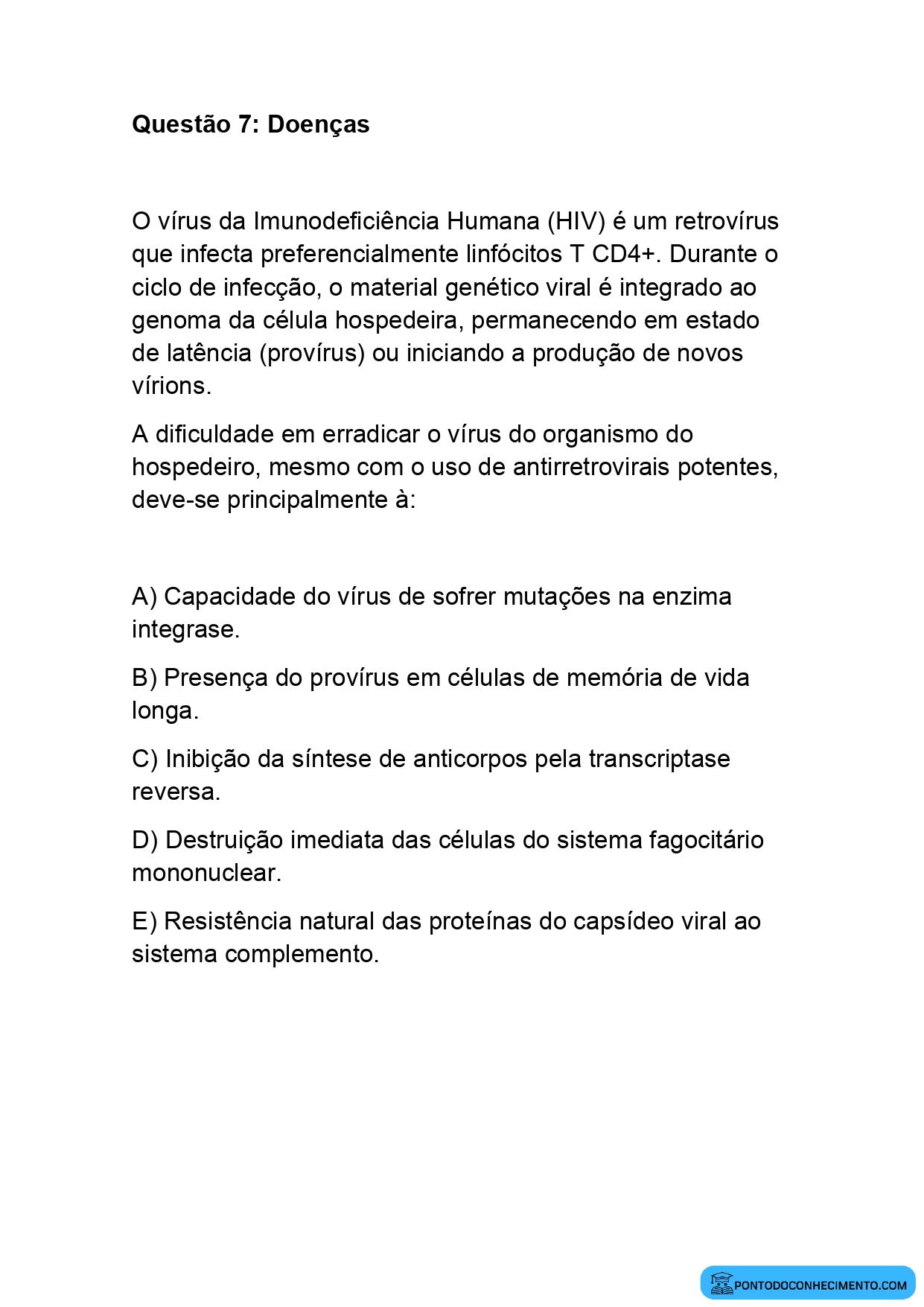 A dificuldade em erradicar o vírus do organismo do hospedeiro, mesmo com o uso de antirretrovirais potentes, deve-se principalmente à: