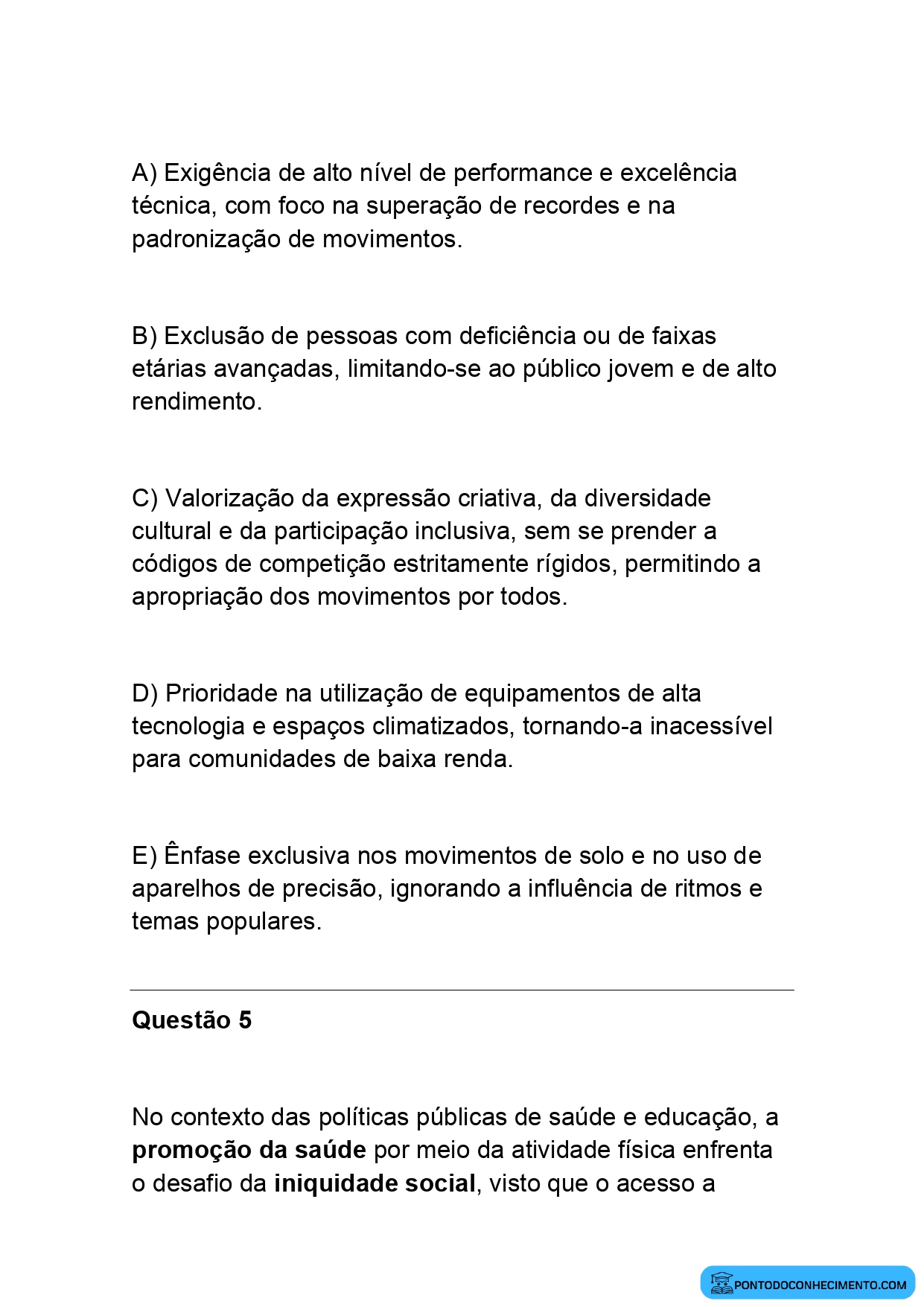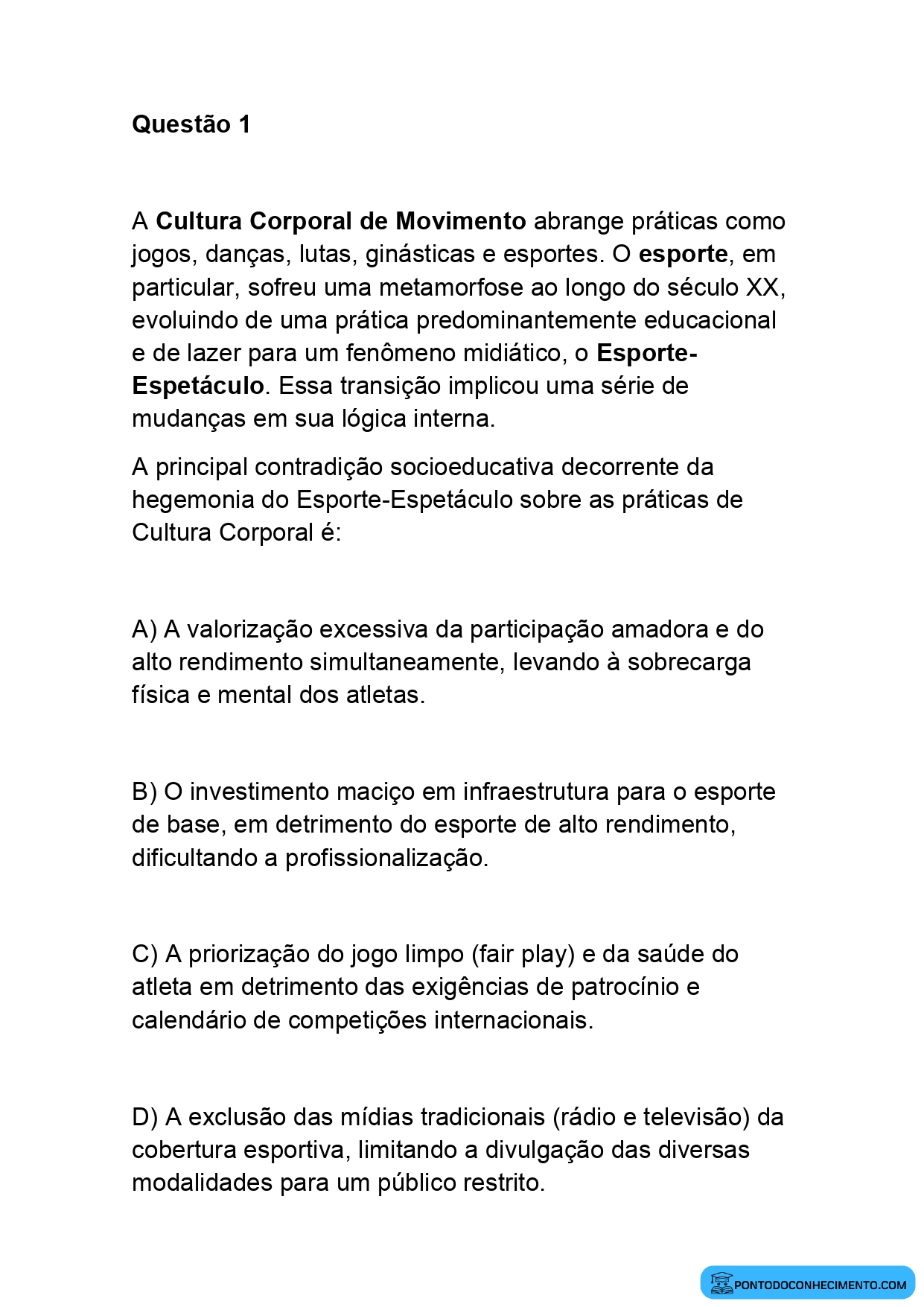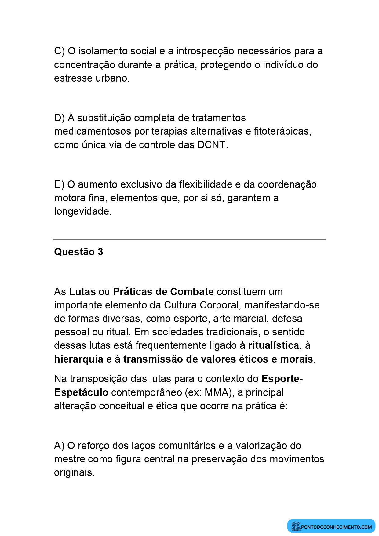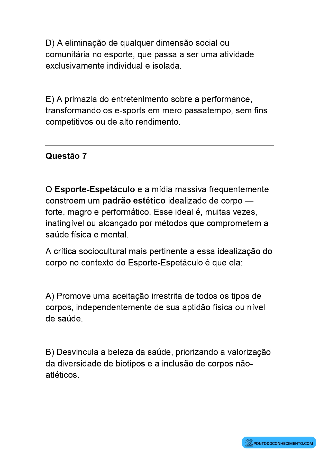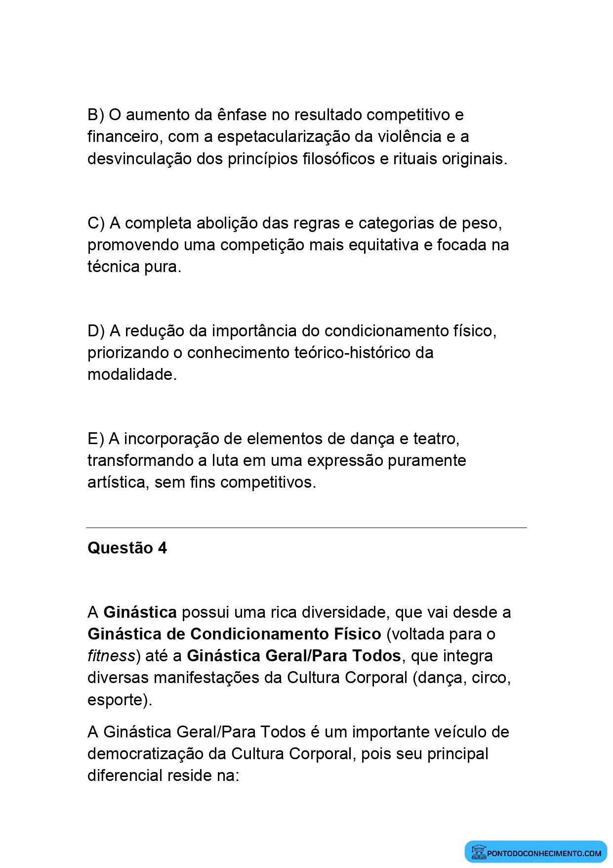 - D) A redução da importância do condicionamento físico, priorizando o conhecimento teórico-histórico da modalidade.
