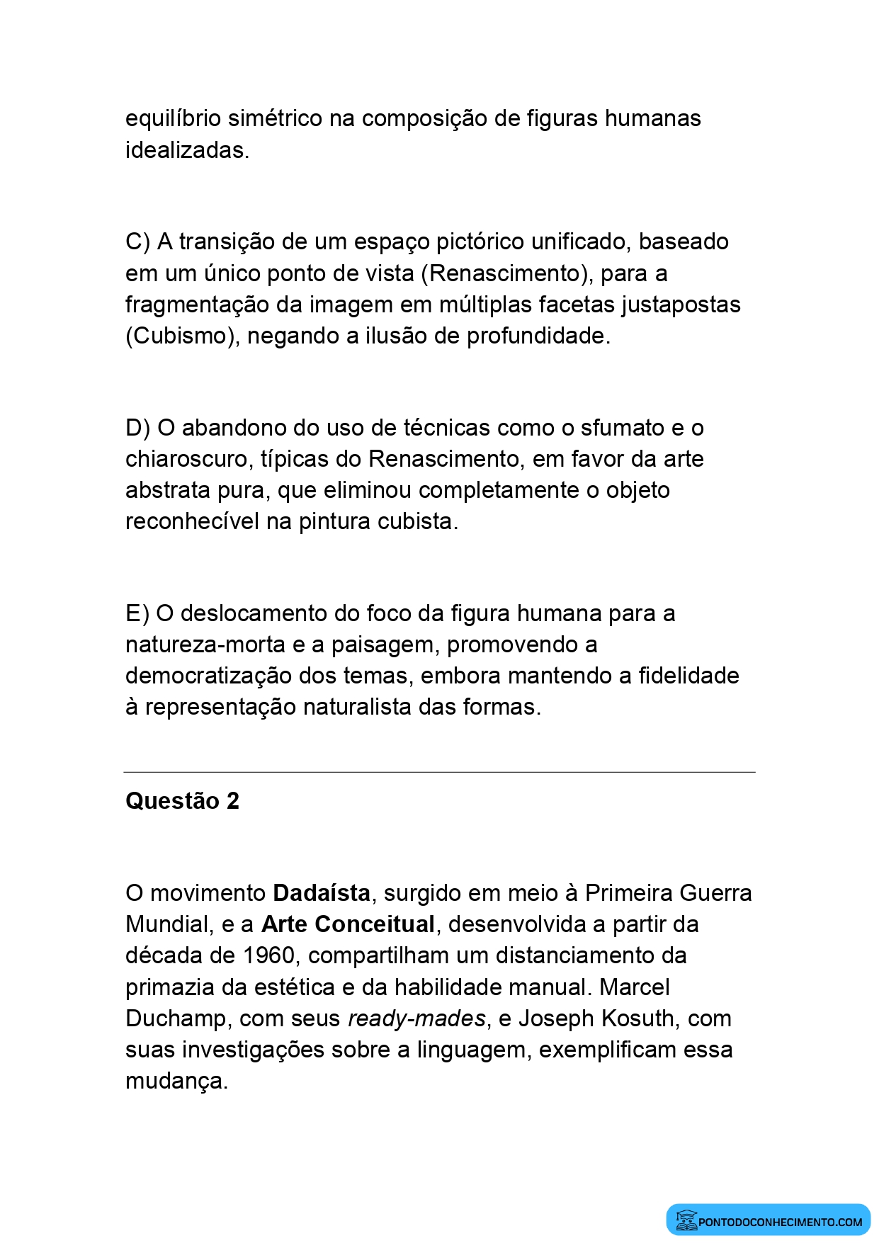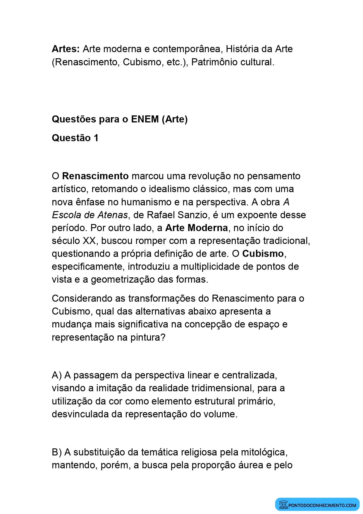 Arte moderna e contemporânea, História da Arte (Renascimento, Cubismo, etc.), Patrimônio cultural.