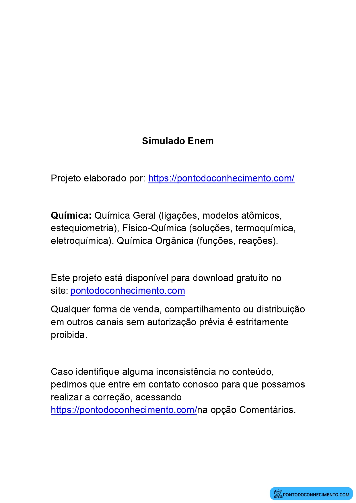 CLIQUE AQUI: Simulado Enem Química em PDF