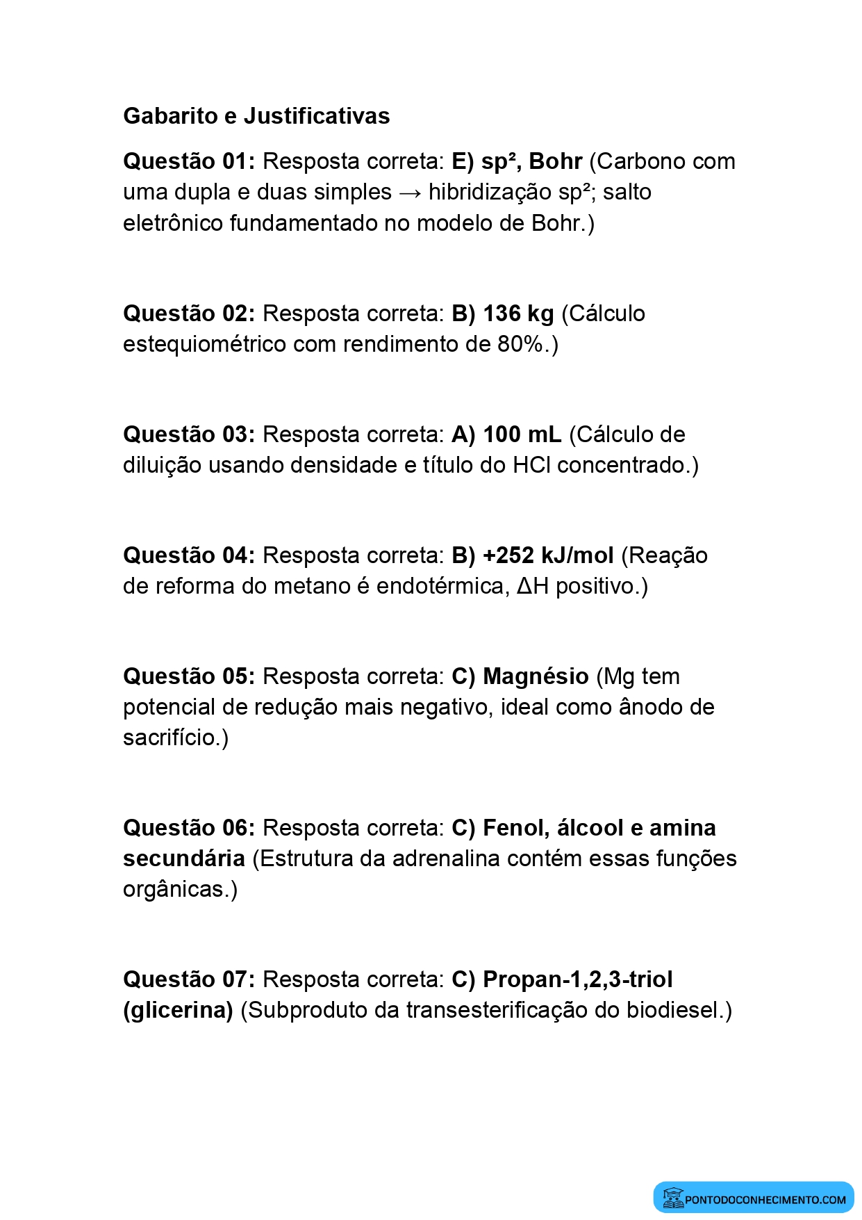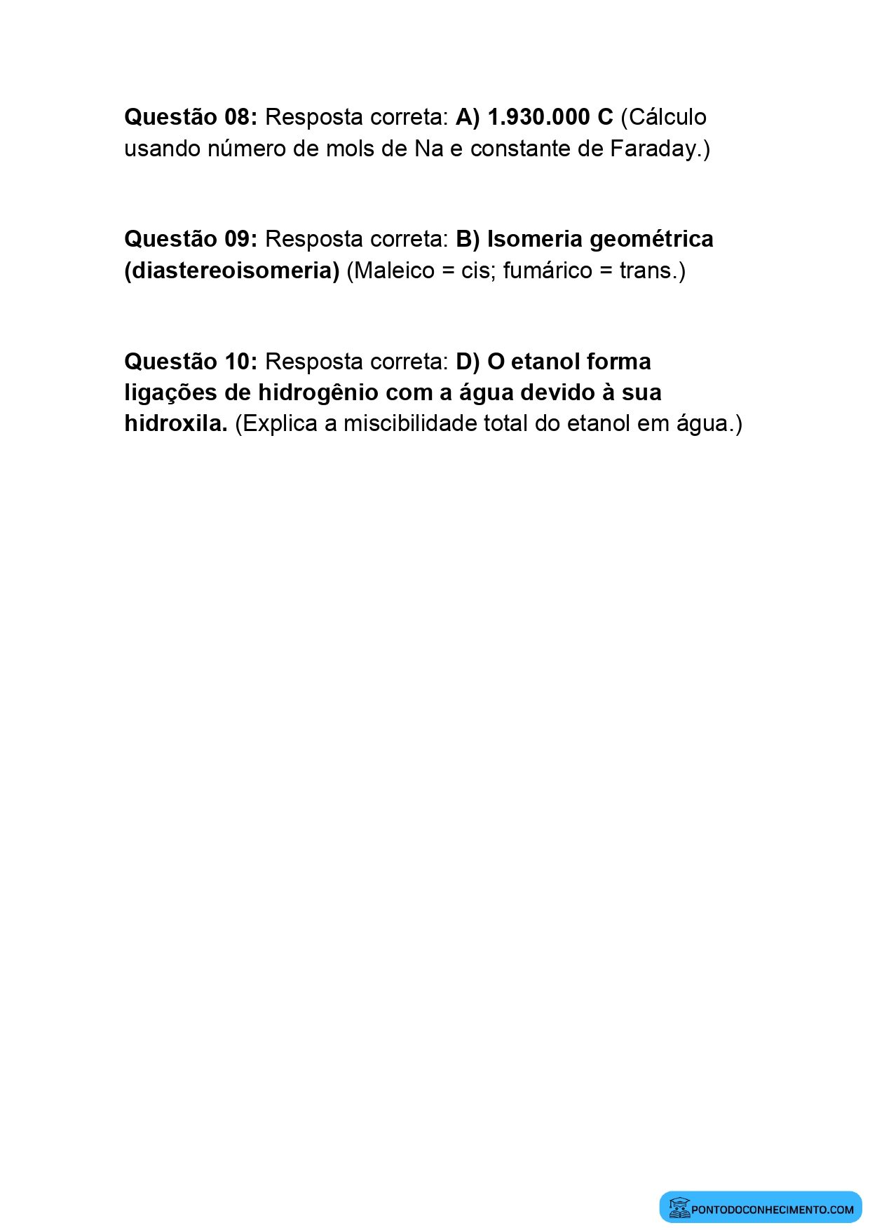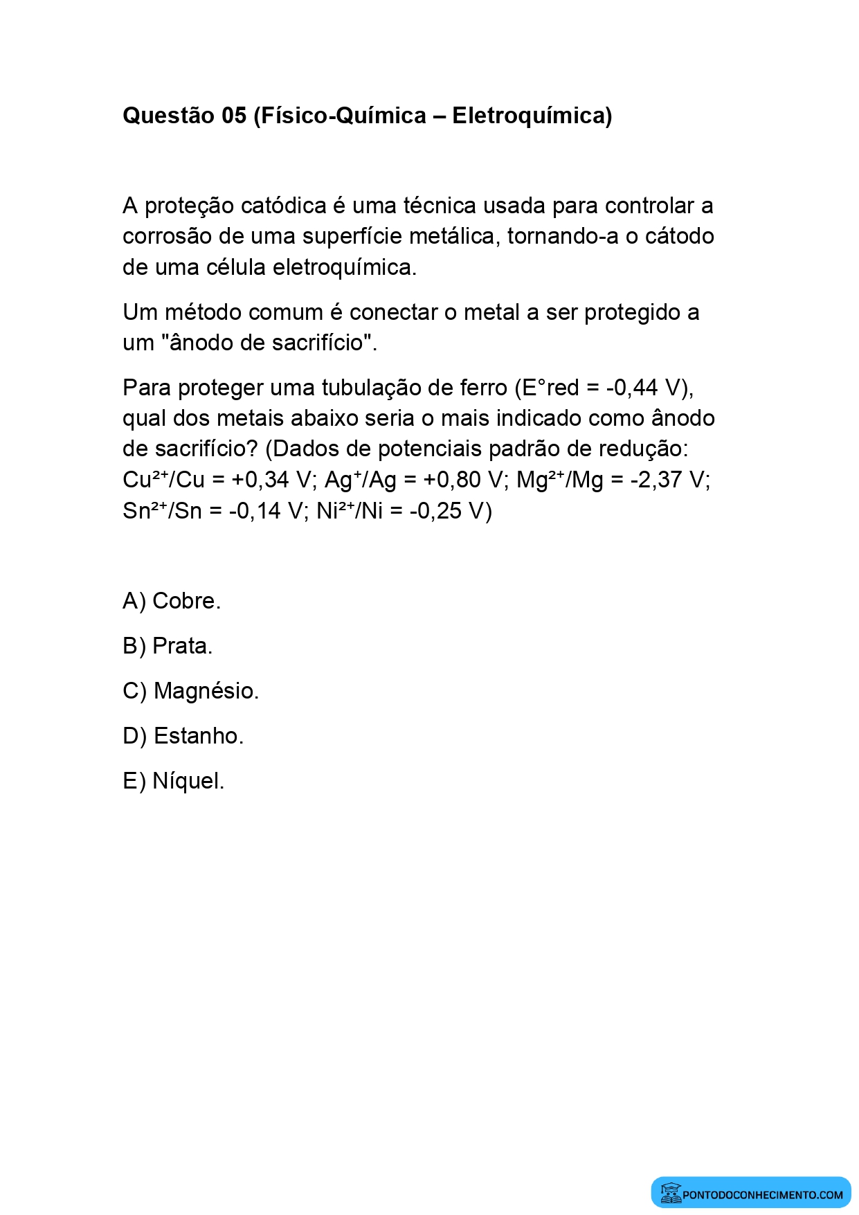 Questão 08 (Físico-Química – Eletroquímica/Eletrólise)