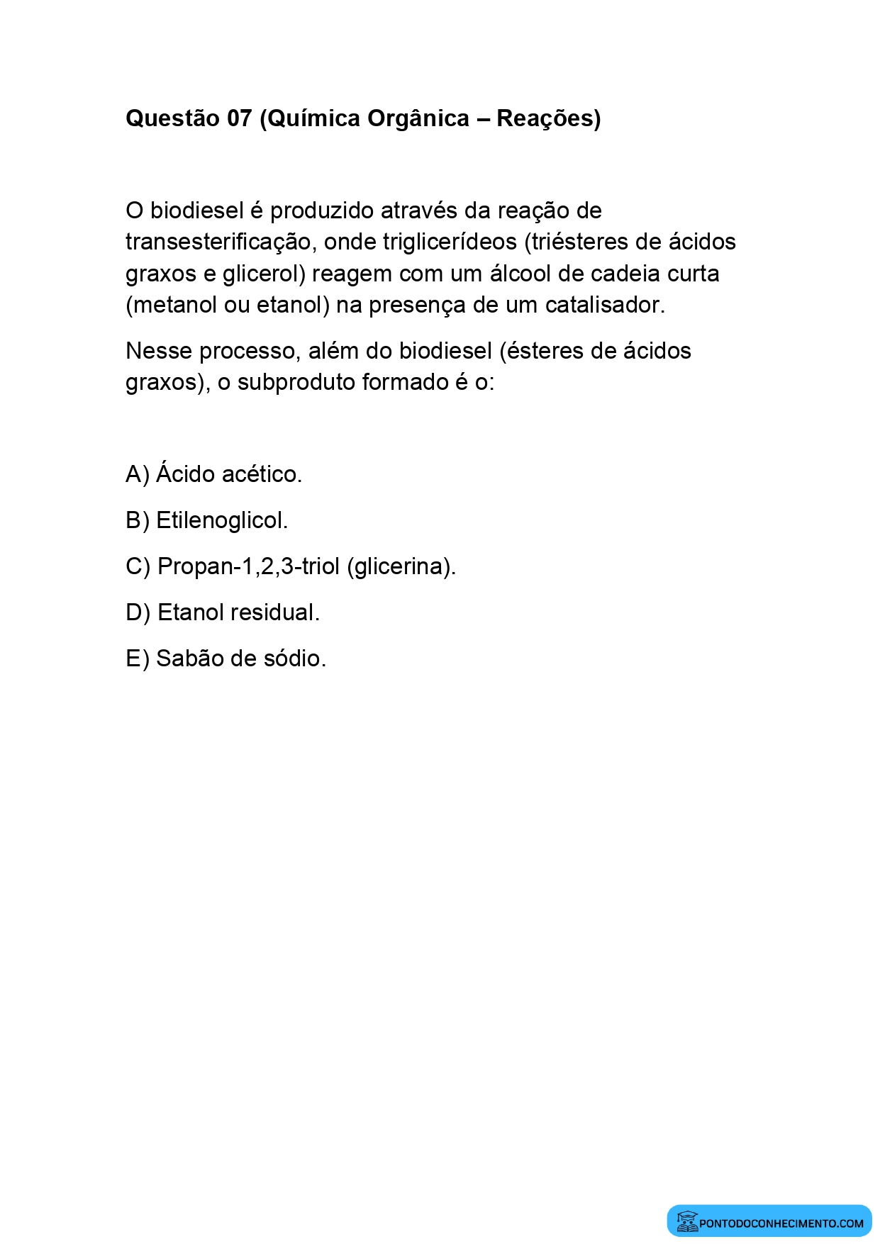 Nesse processo, além do biodiesel (ésteres de ácidos graxos), o subproduto formado é o: