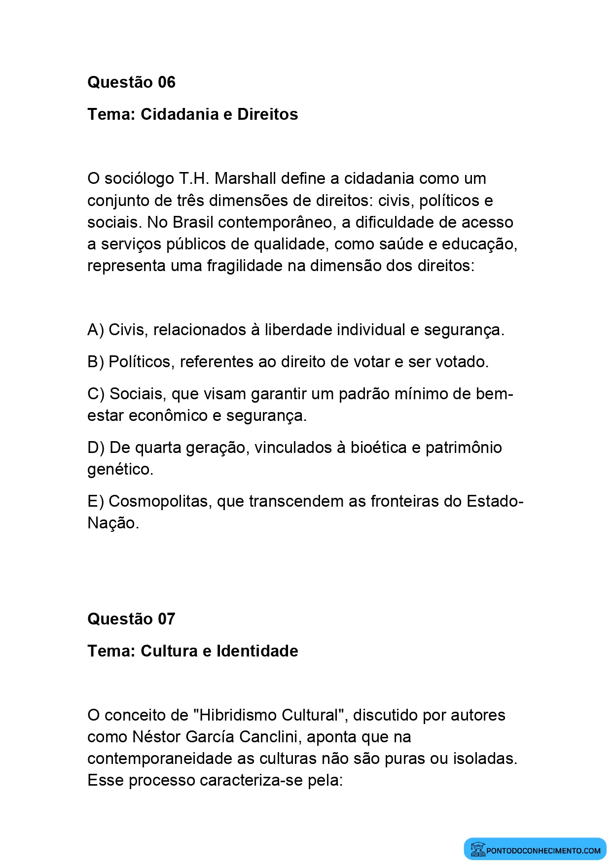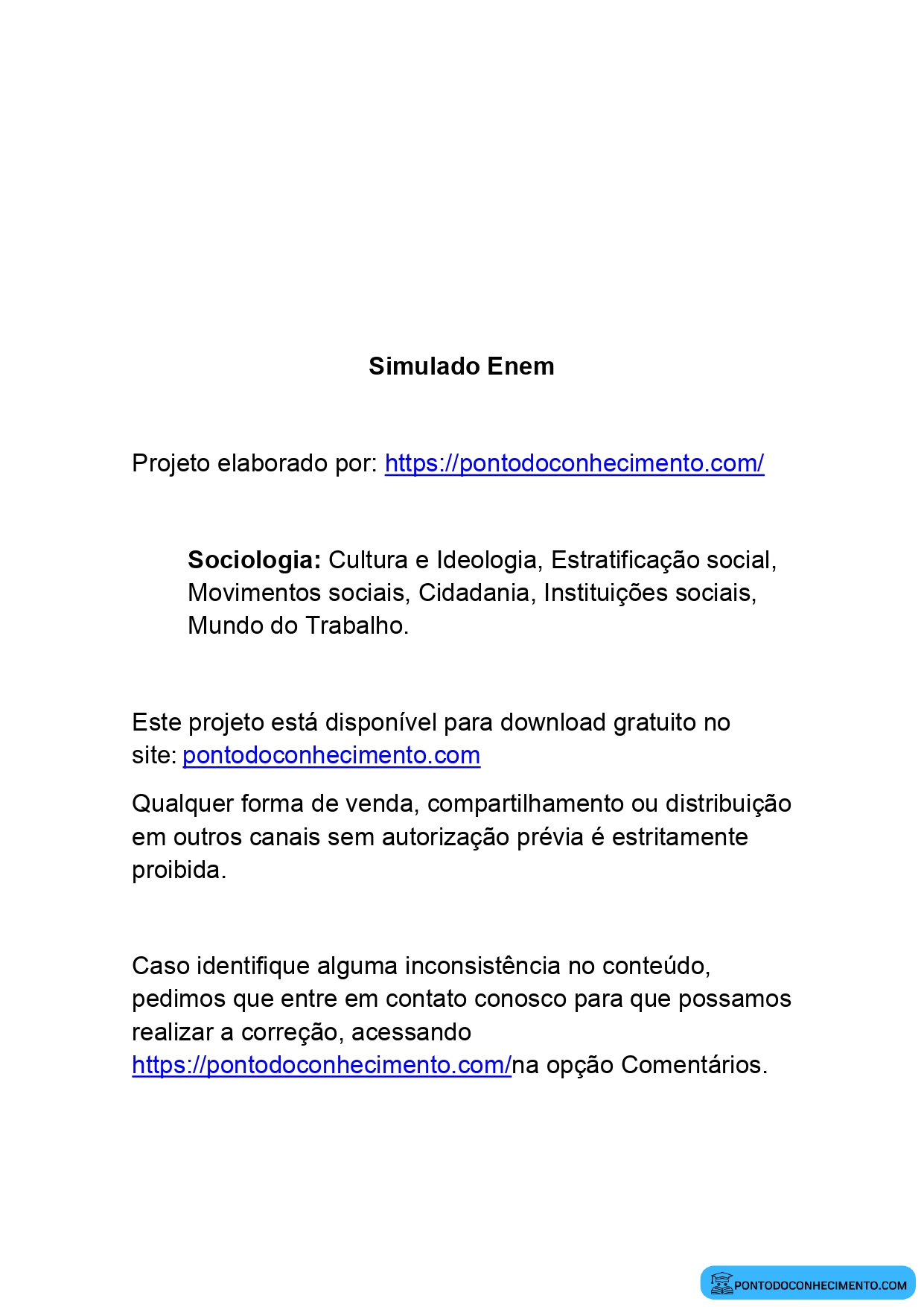 CLIQUE AQUI: Simulado Enem Sociologia em PDF
