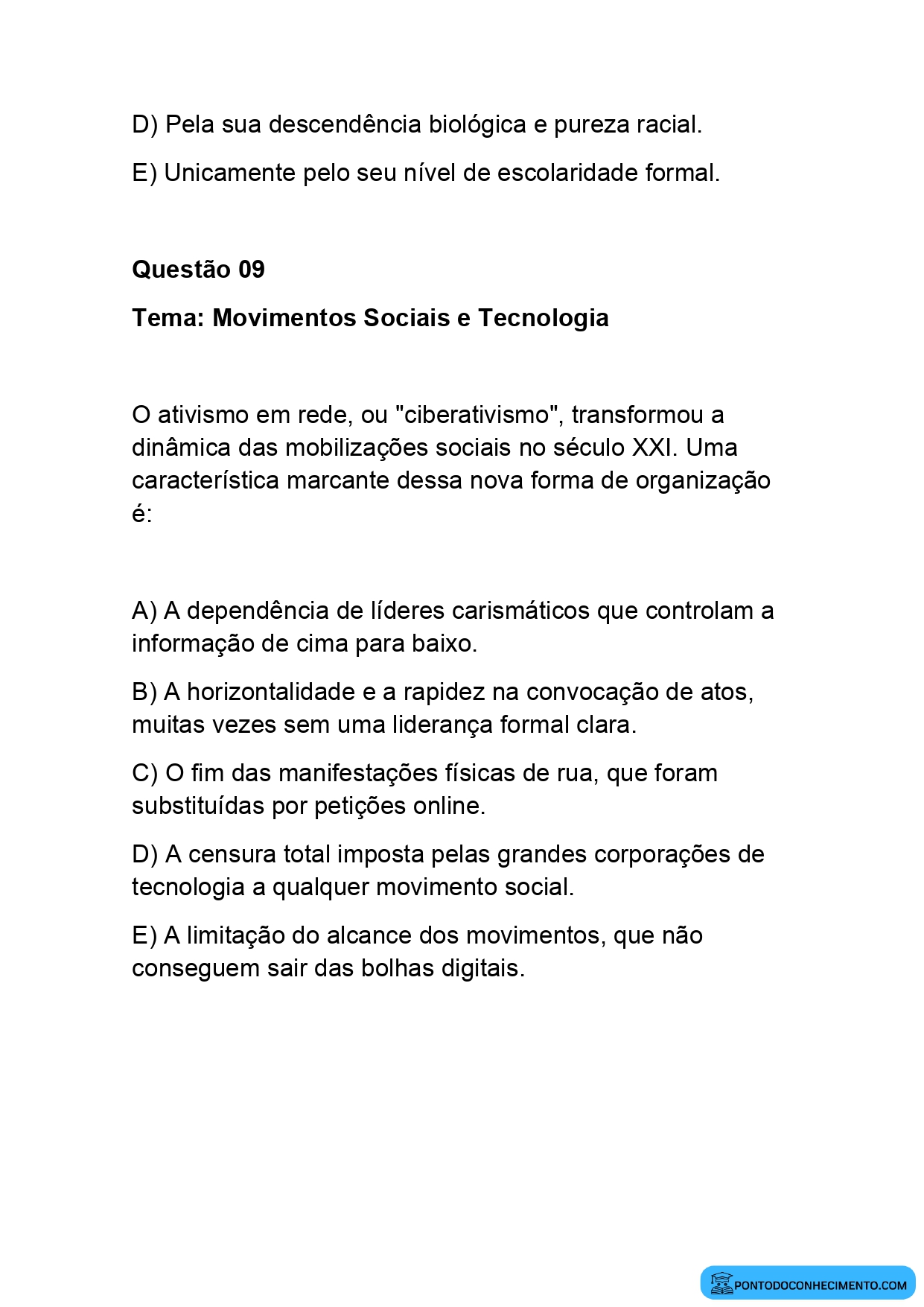 O ativismo em rede, ou “ciberativismo”, transformou a dinâmica das mobilizações sociais no século XXI. Uma característica marcante dessa nova forma de organização é: